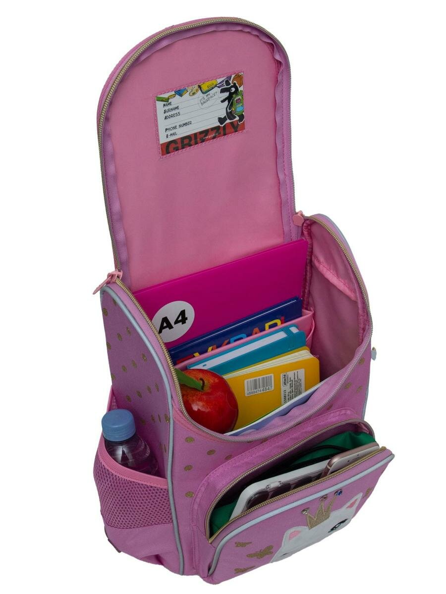 Ранец GRIZZLY анатомическая спинка, с мешком для обуви, для девочек, LIKE, 33х25х13 см, RAm-484-6/1