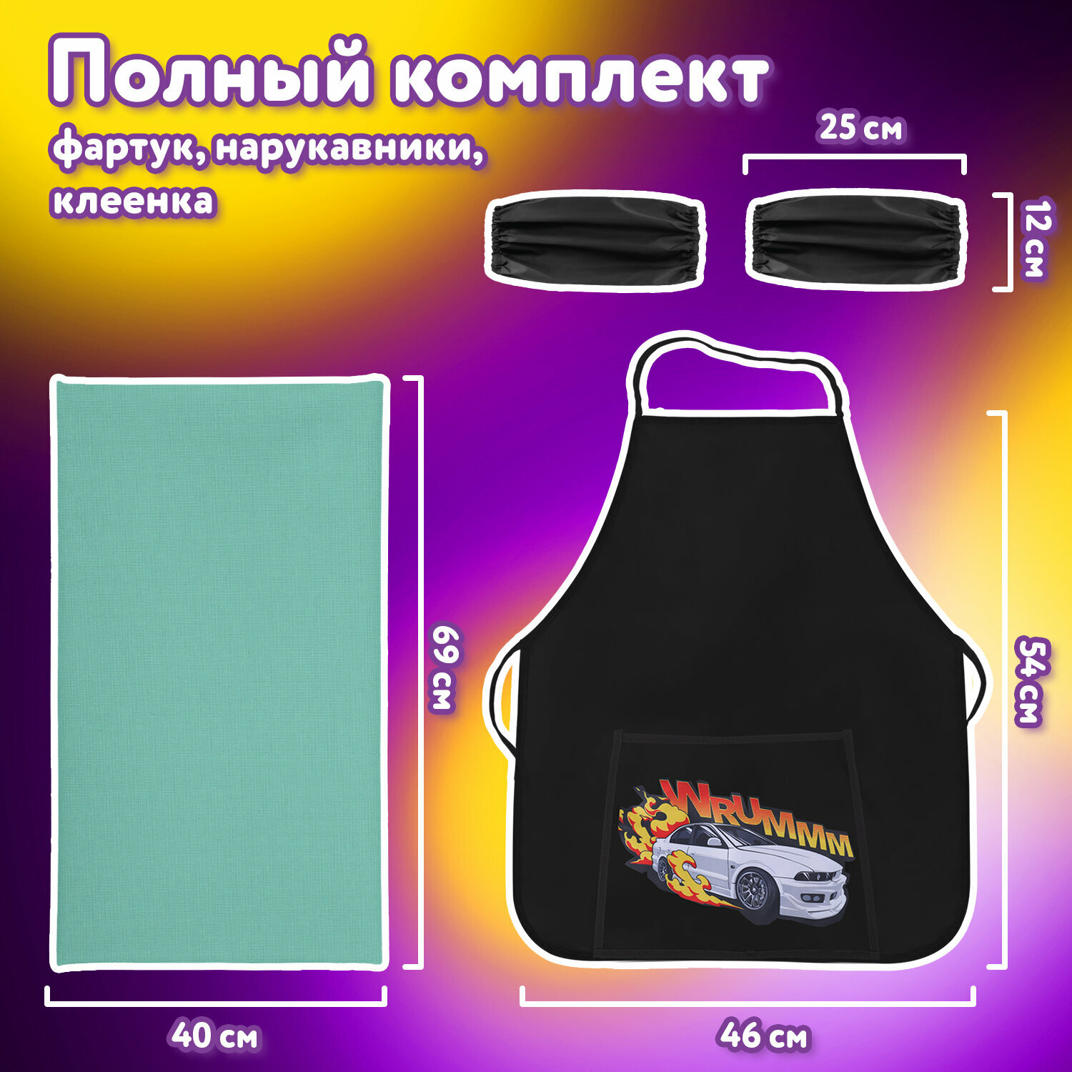 Фартук для рисования и труда с нарукавниками для мальчиков в школу, клеенка ПВХ на стол детская, коврик подложка настольная, Юнландия Wrum, 272366 интересное: