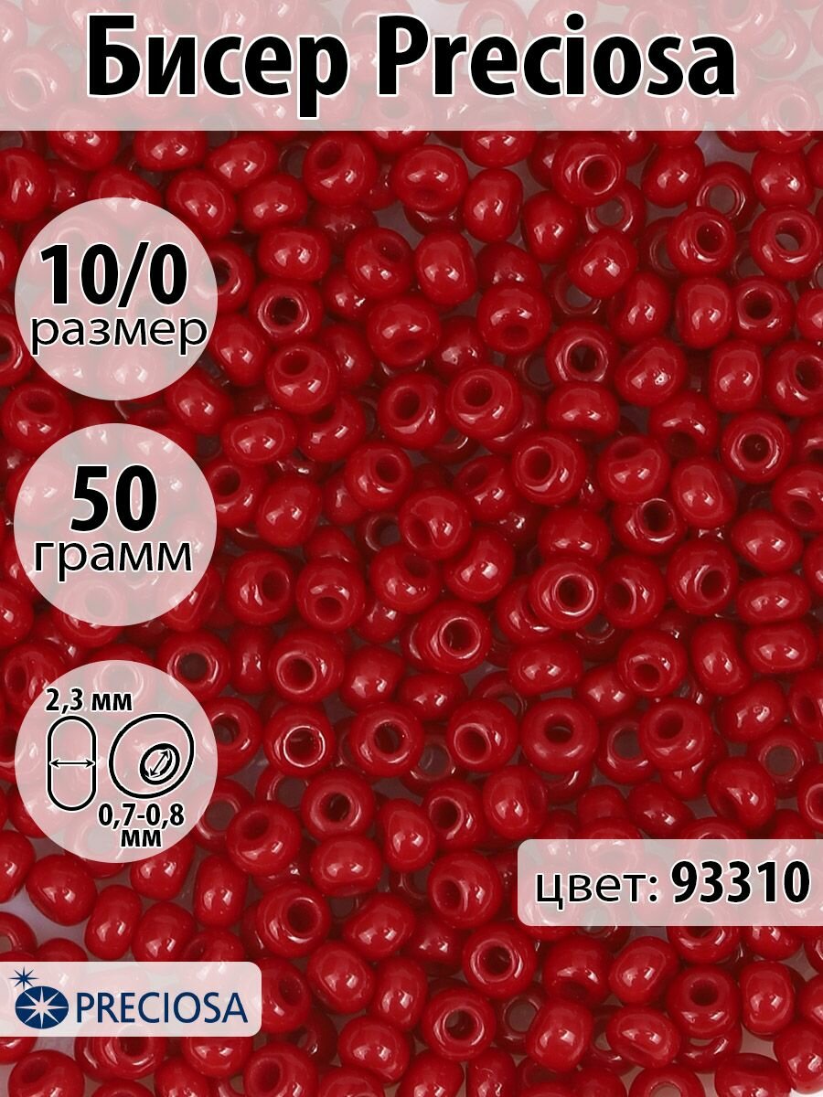 Бисер чешский PRECIOSA круглый 10/0 94170 красный непрозрачный радужный, 1 сорт, 50г