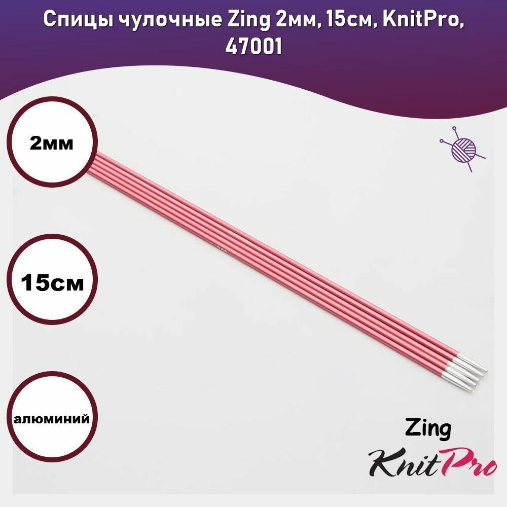 Спицы чулочные Knit Pro Zing, 7 мм, 15 см, алюминий, аметистовый, 5 шт (KNPR.47015)