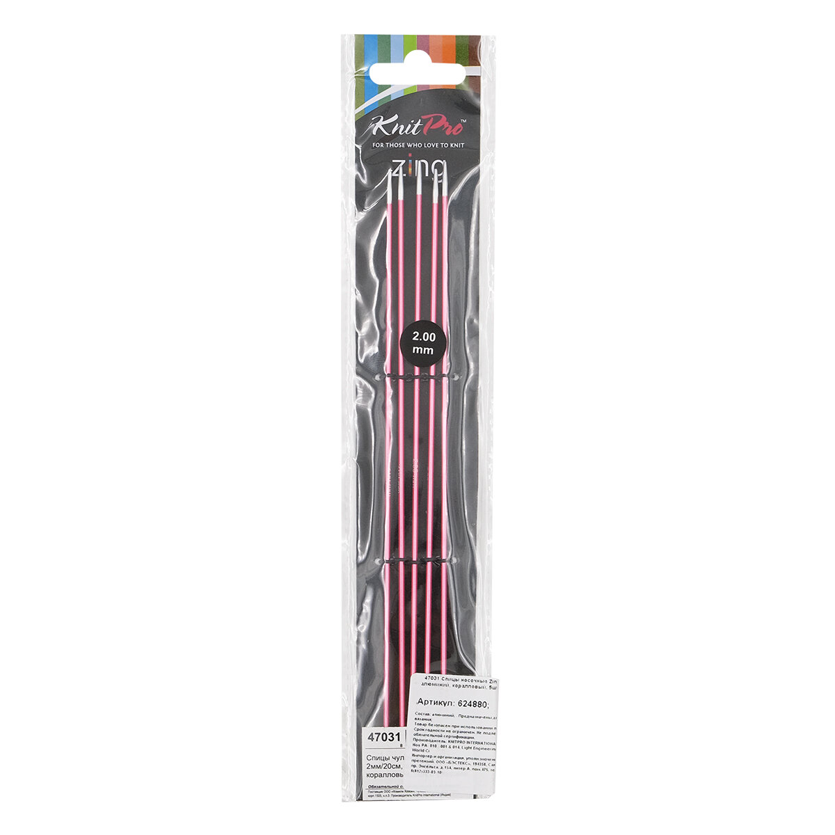 Спицы чулочные Knit Pro Zing, 2 мм, 15 см, алюминий, коралловый, 5 шт (KNPR.47001)