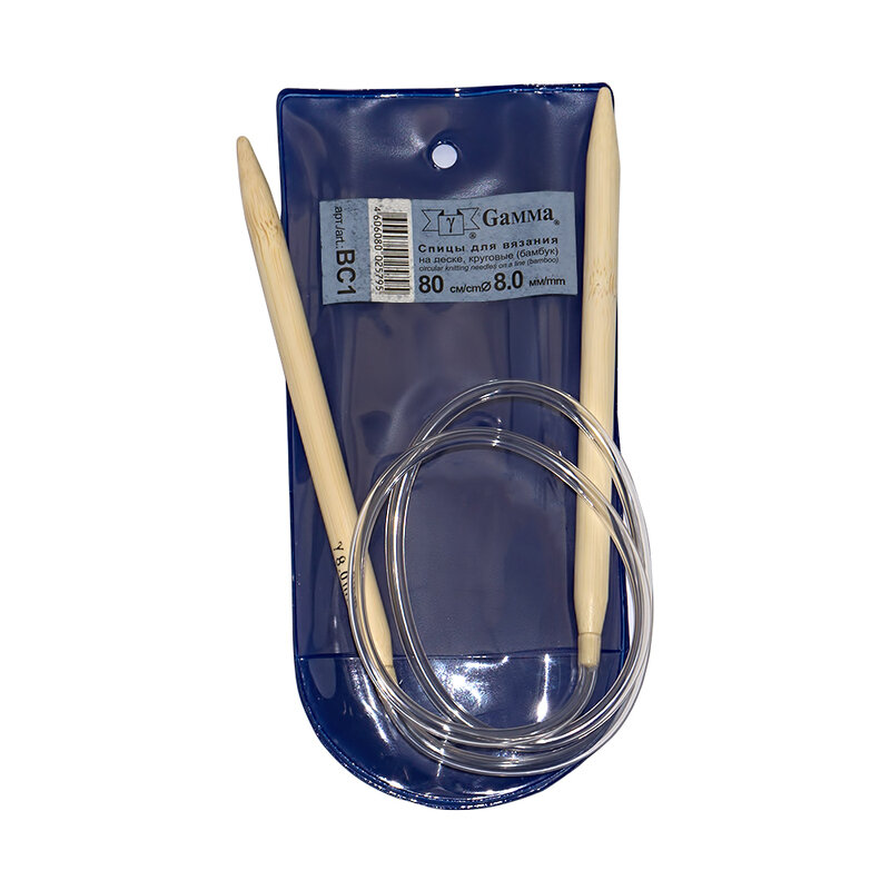 Купить Спицы для вязания круговые GAMMA, бамбуковые, d8мм, 80см, 1шт