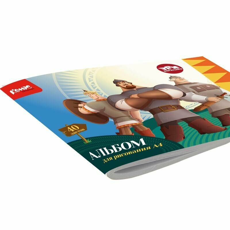 Альбом для рисования Комус Класс Три богатыря А4, 100 г/кв. м, 40 листов, на спирали