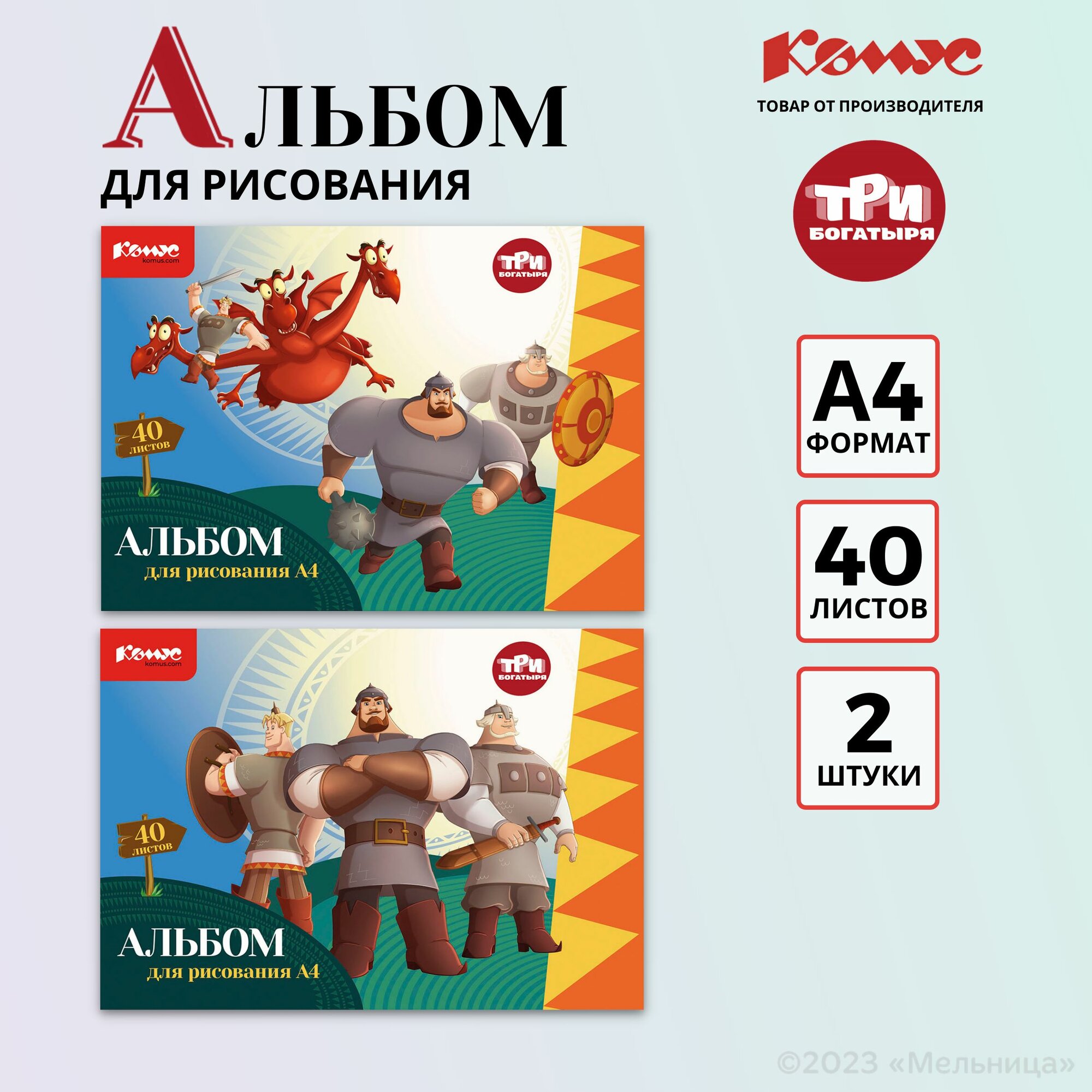 Купить Альбом для рисования Комус Класс Три богатыря А4, 40 листов, 2 штуки