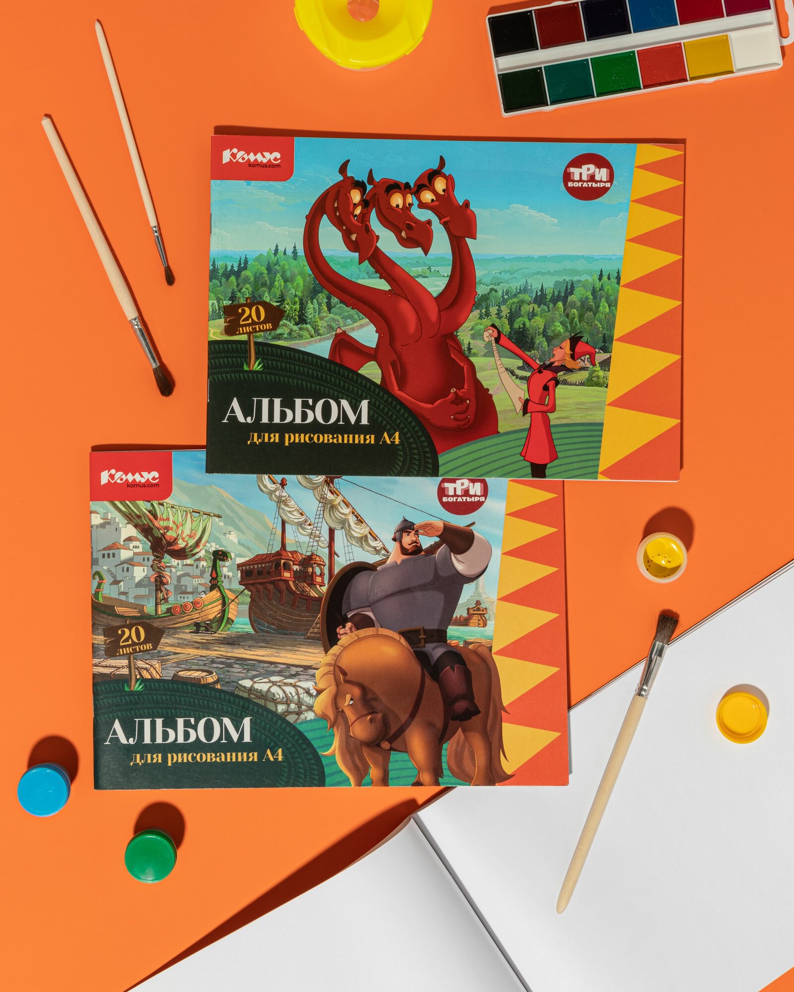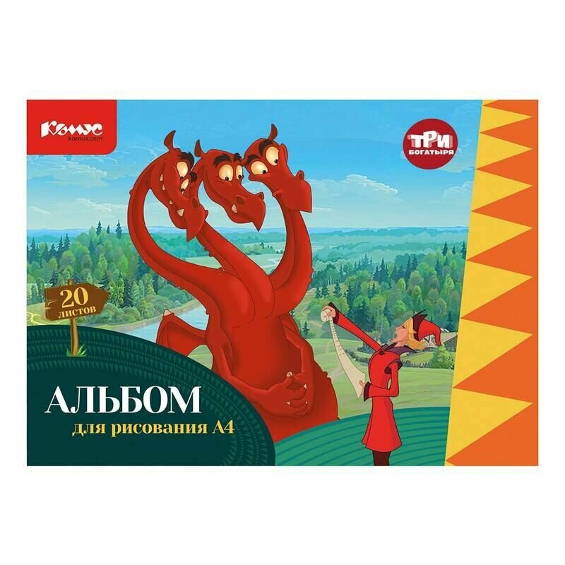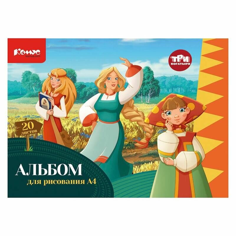 Купить Альбом для рисования Комус Класс Три богатыря А4, 20 листов, 4 штуки