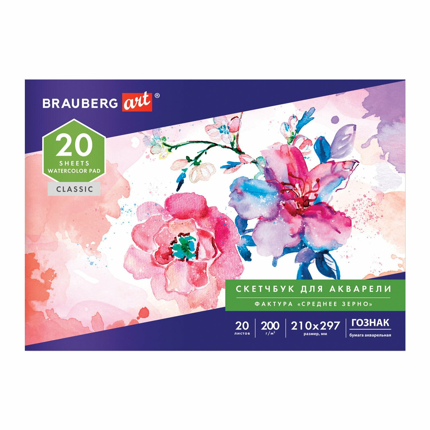 Купить Альбом для рисования для акварели бумага Гознак Спб 200 г/м2, 210x297 мм, 20 л., склейка, Brauberg Art