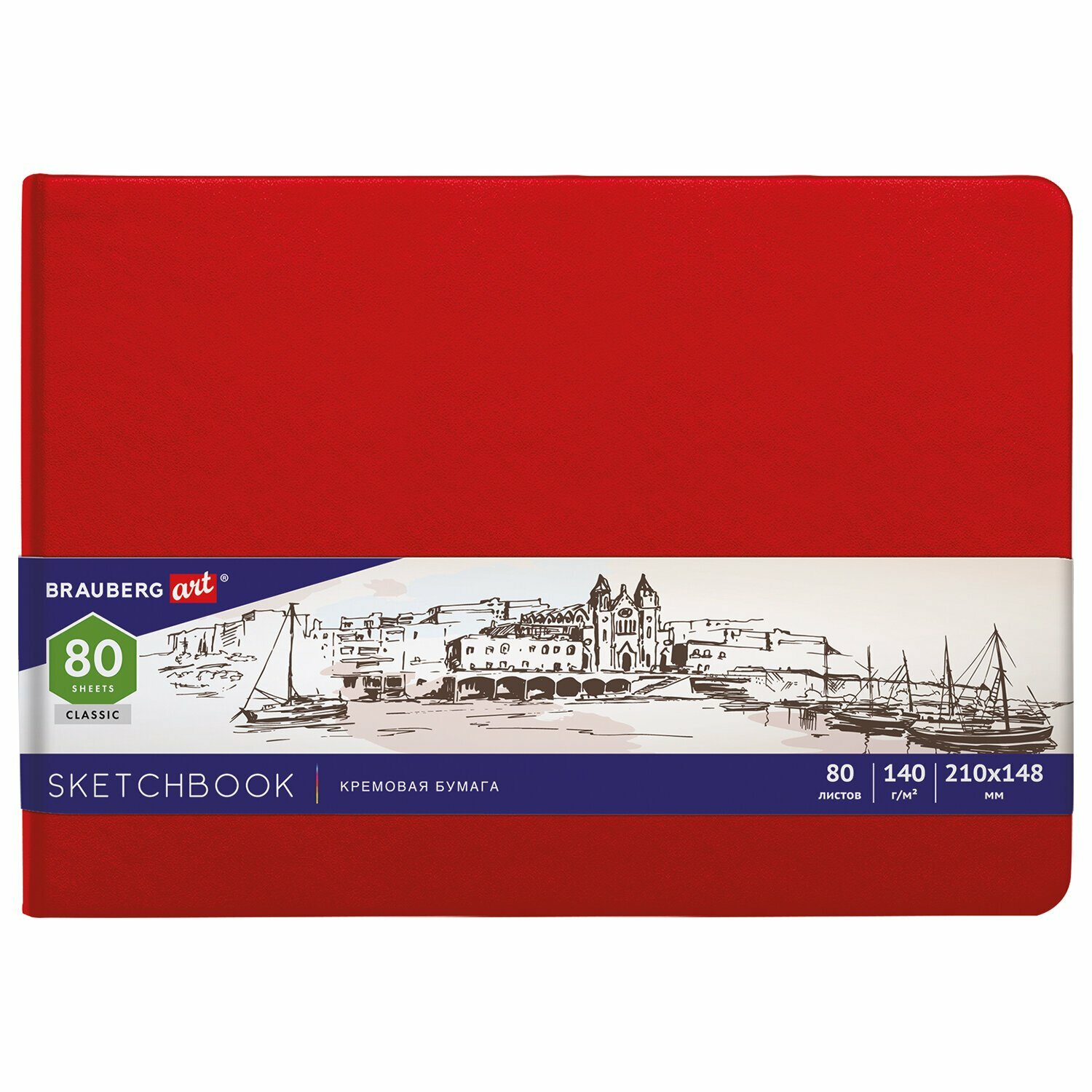 Скетчбук 140г/м 148*210 мм Brauberg ART Classic 80л, кожзам, кремовая бумага, красный 113197 Brauber .