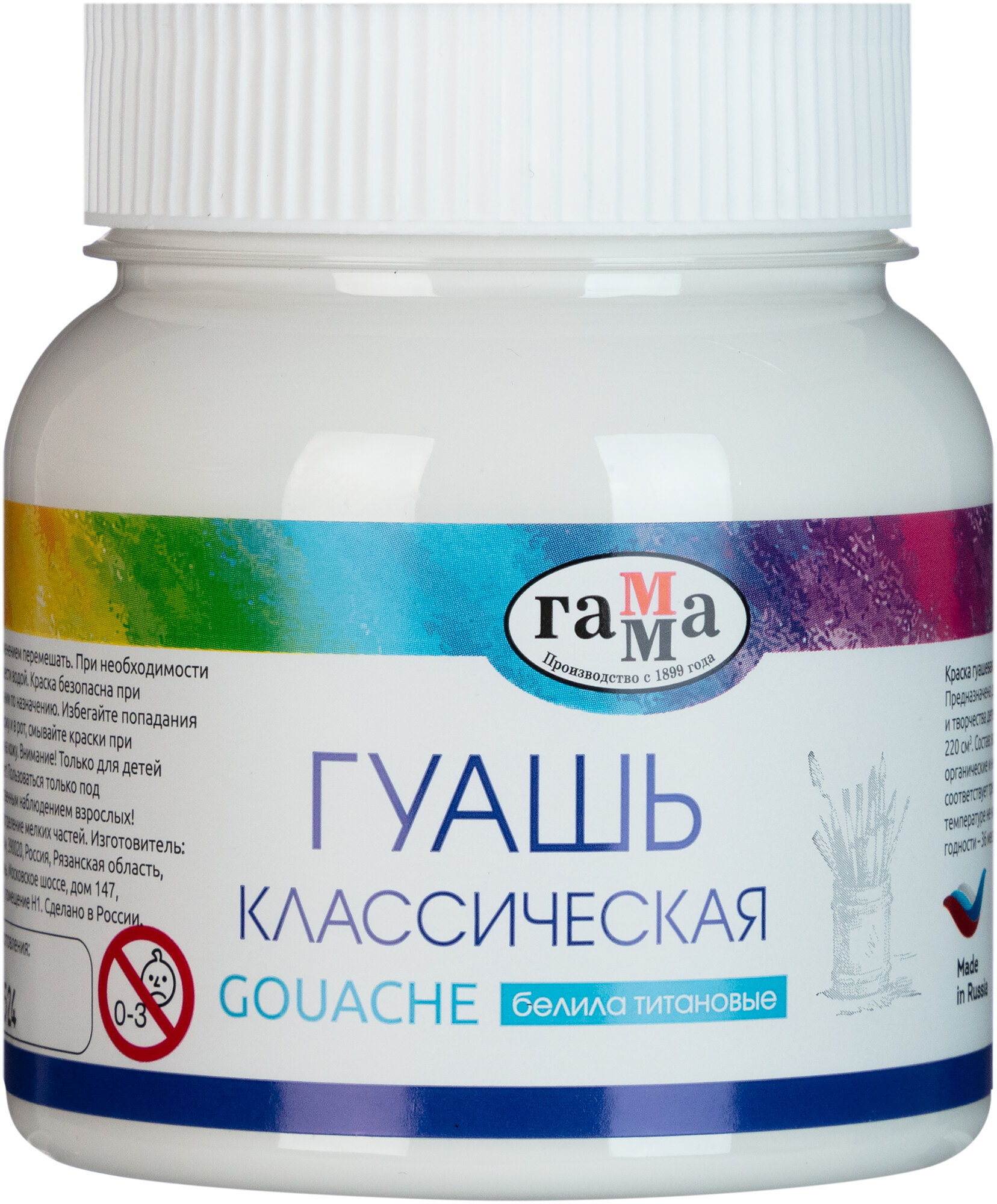 Гуашь Классическая 220мл Белила Цинковые 221066222 /гамма/