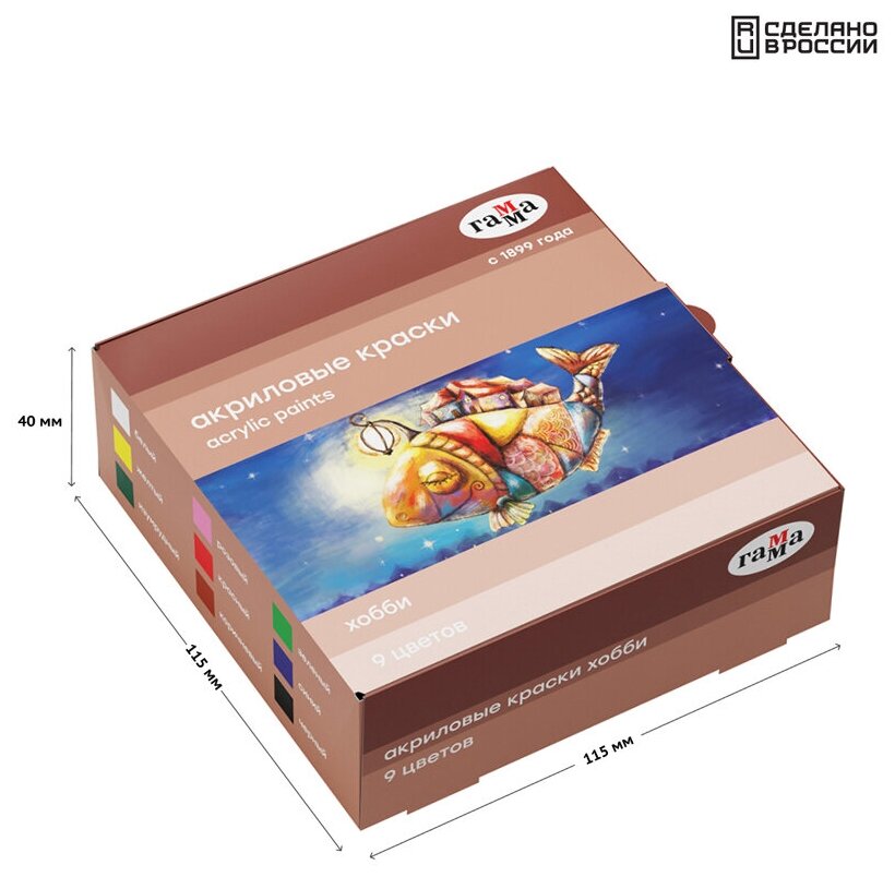 Комплект 9 шт, Краски акриловые декоративные Гамма "Хобби", 09 цветов, 20мл, картон. упаковка