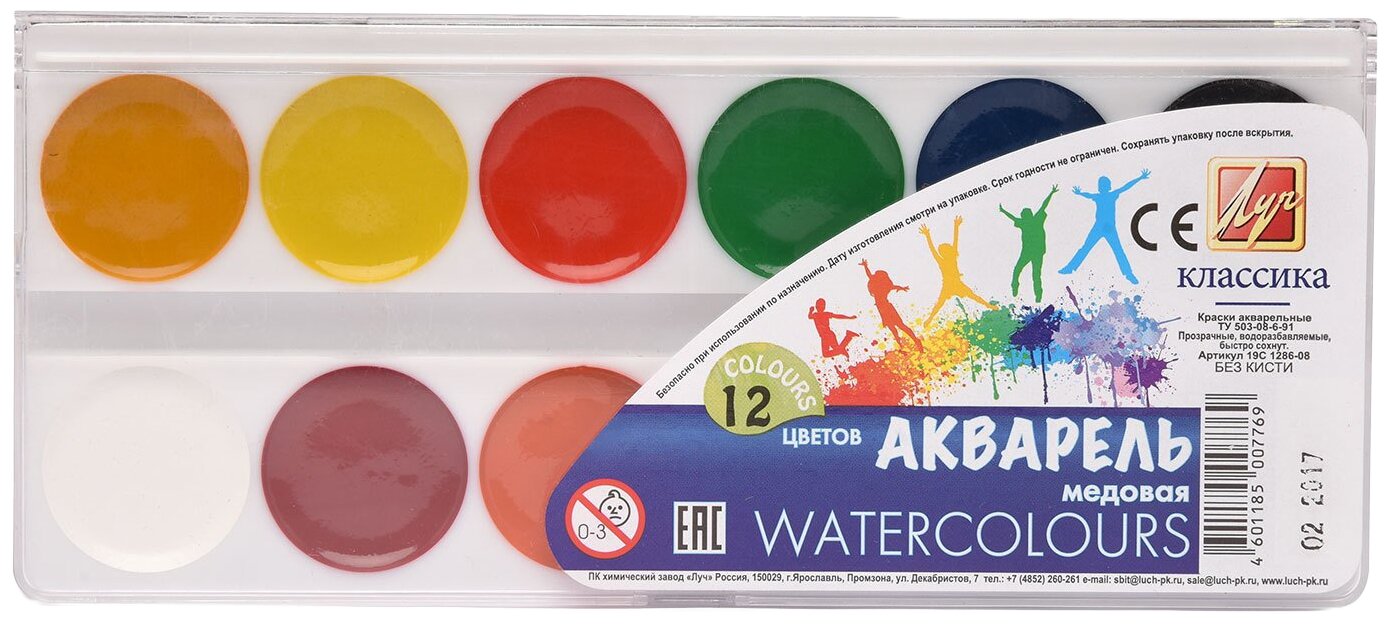 Акварель Луч Классика без кисти, 12 цв., 1 шт
