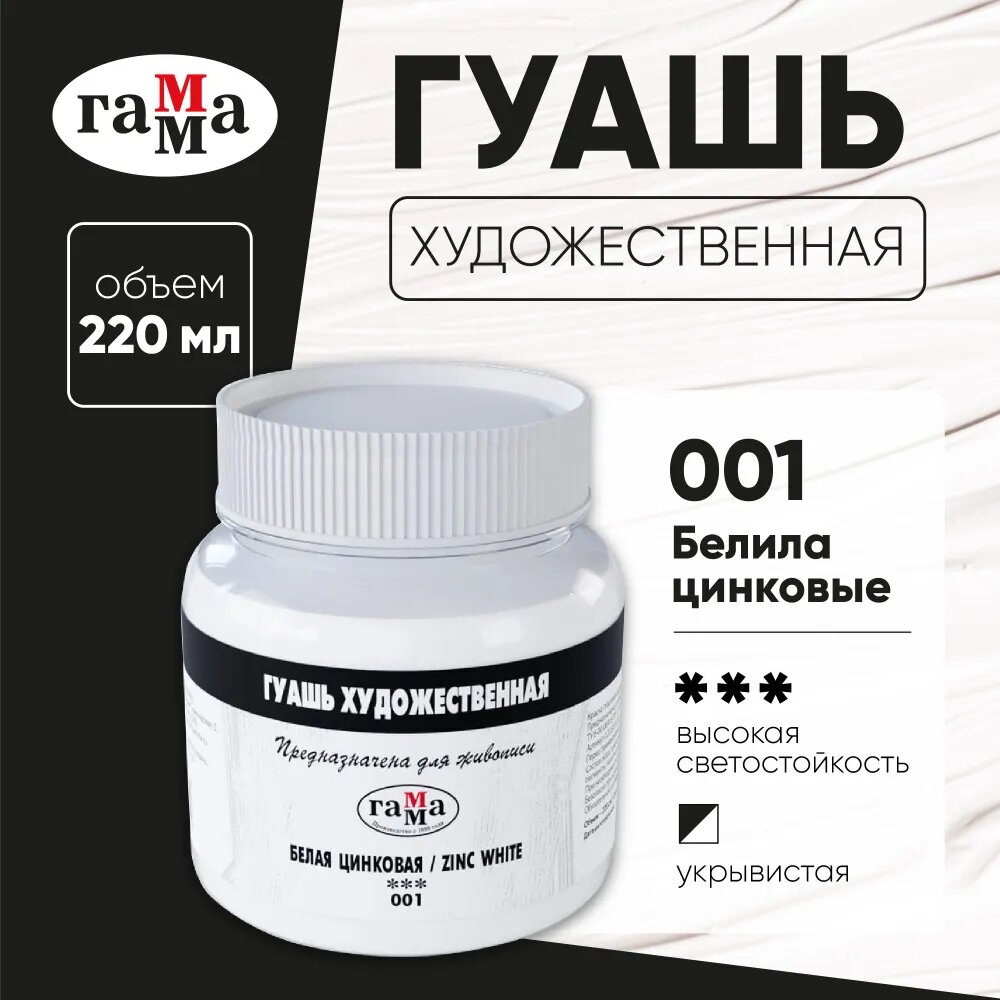 Купить Гуашь художественная Гамма, белая цинковая, 220мл, номер цвета 001