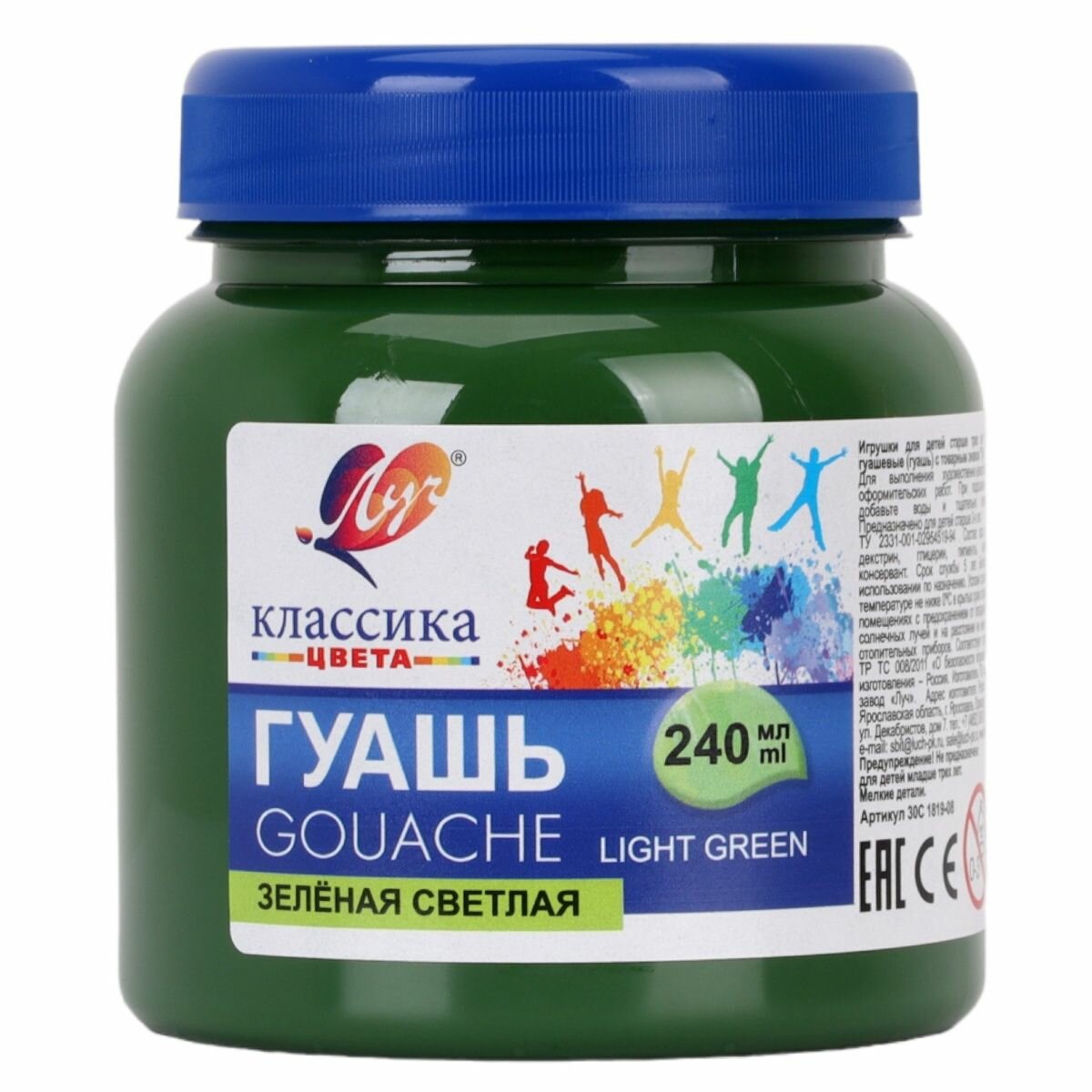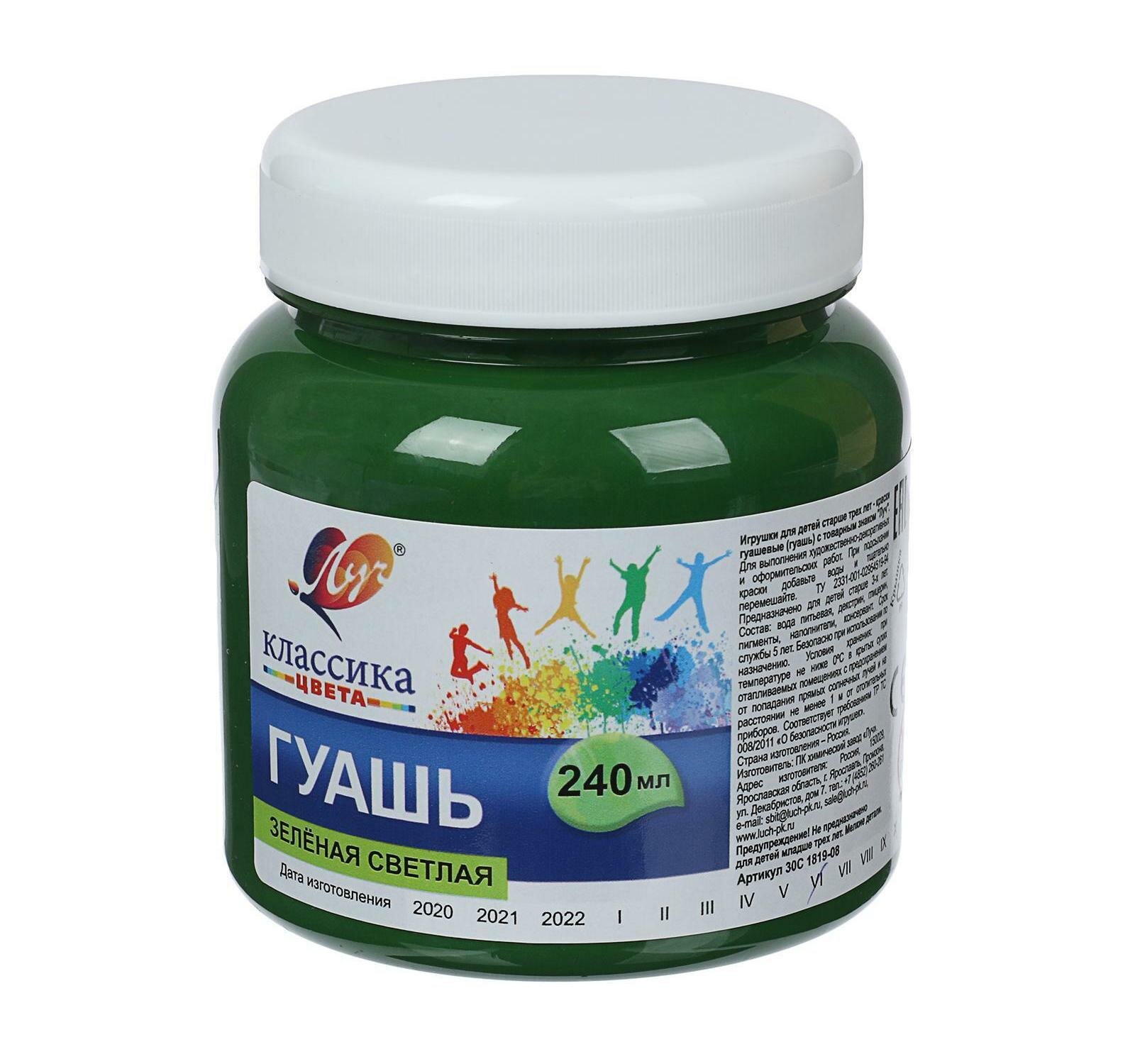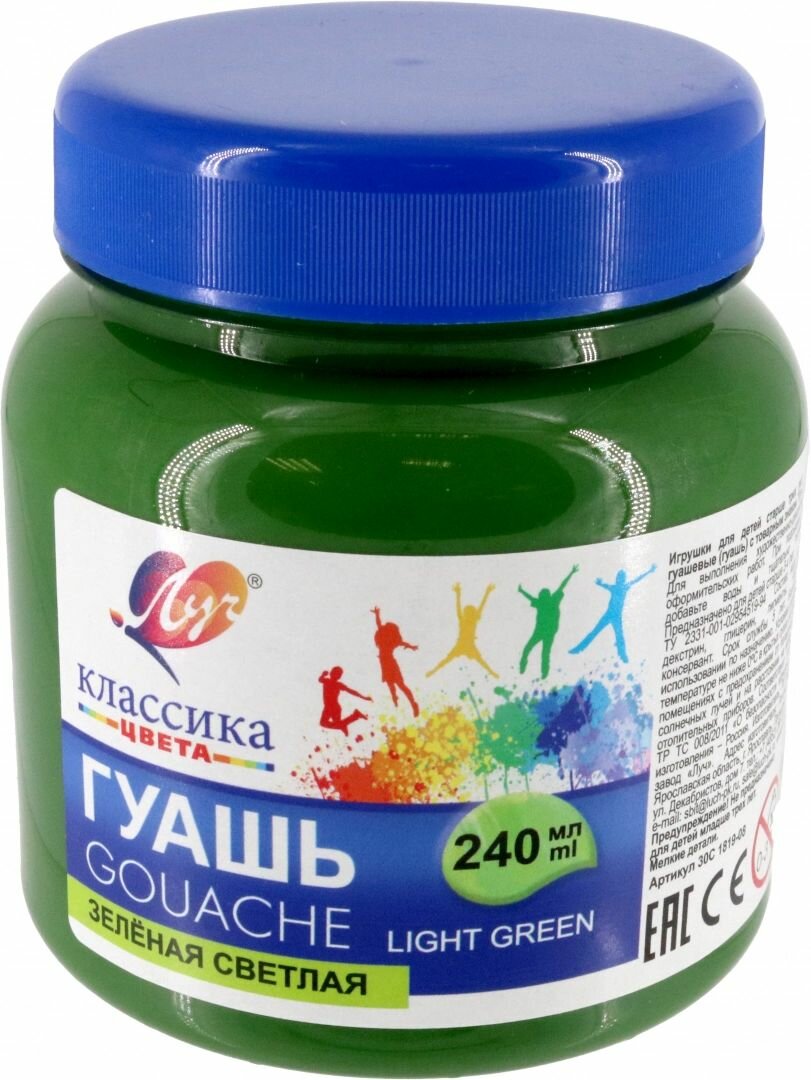 Гуашь художественная Луч 1 шт "Классика", 240 мл, зеленая светлая (30С 1819-08)