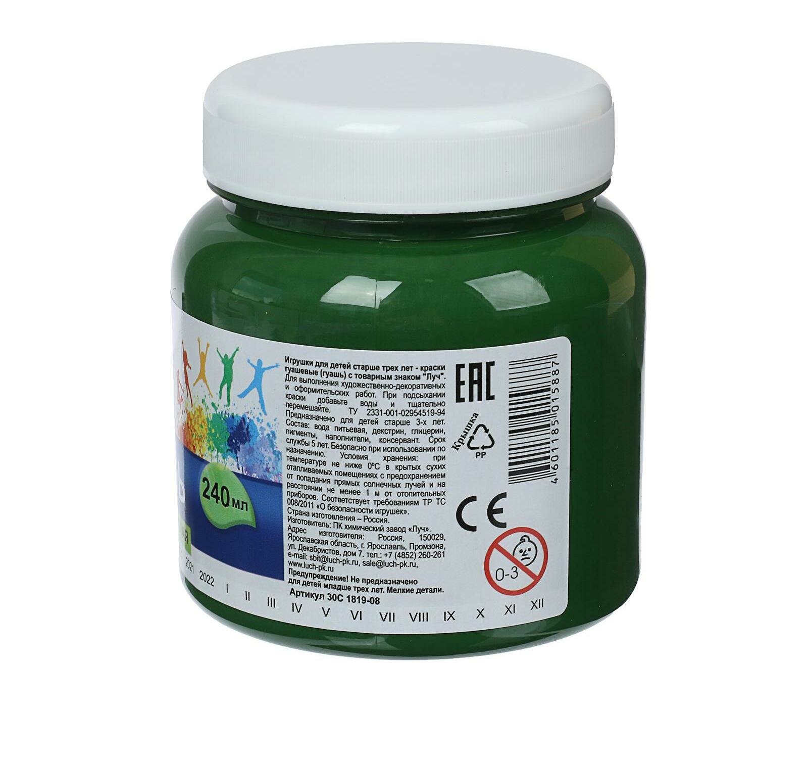 Гуашь Луч художественная 1 шт. "Классика", 240 мл, зеленая темная, 30С 1820-08