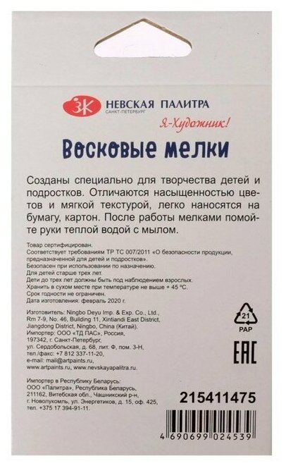 Восковые мелки Я-Художник, 16 цветов, ЗХК Невская палитра