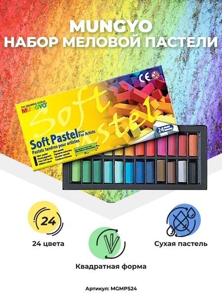 Mungyo Пастель сухая, мягкая, квадратная, профессиональная, 1/2 длины, 24 цвета