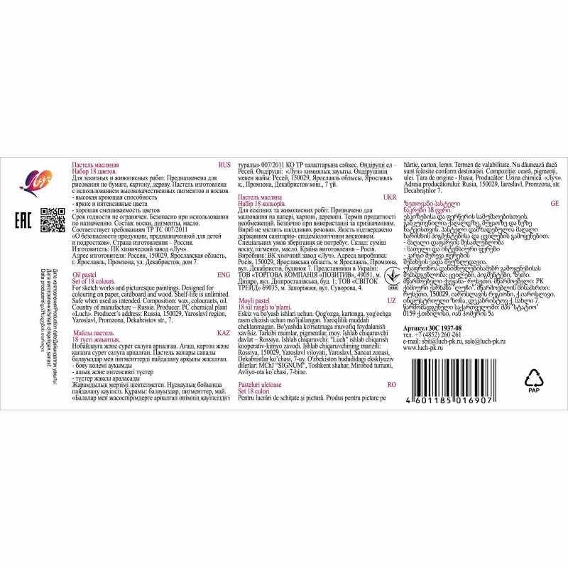 Пастель масляная "Люкс" 18 цветов (круглая) интересное: