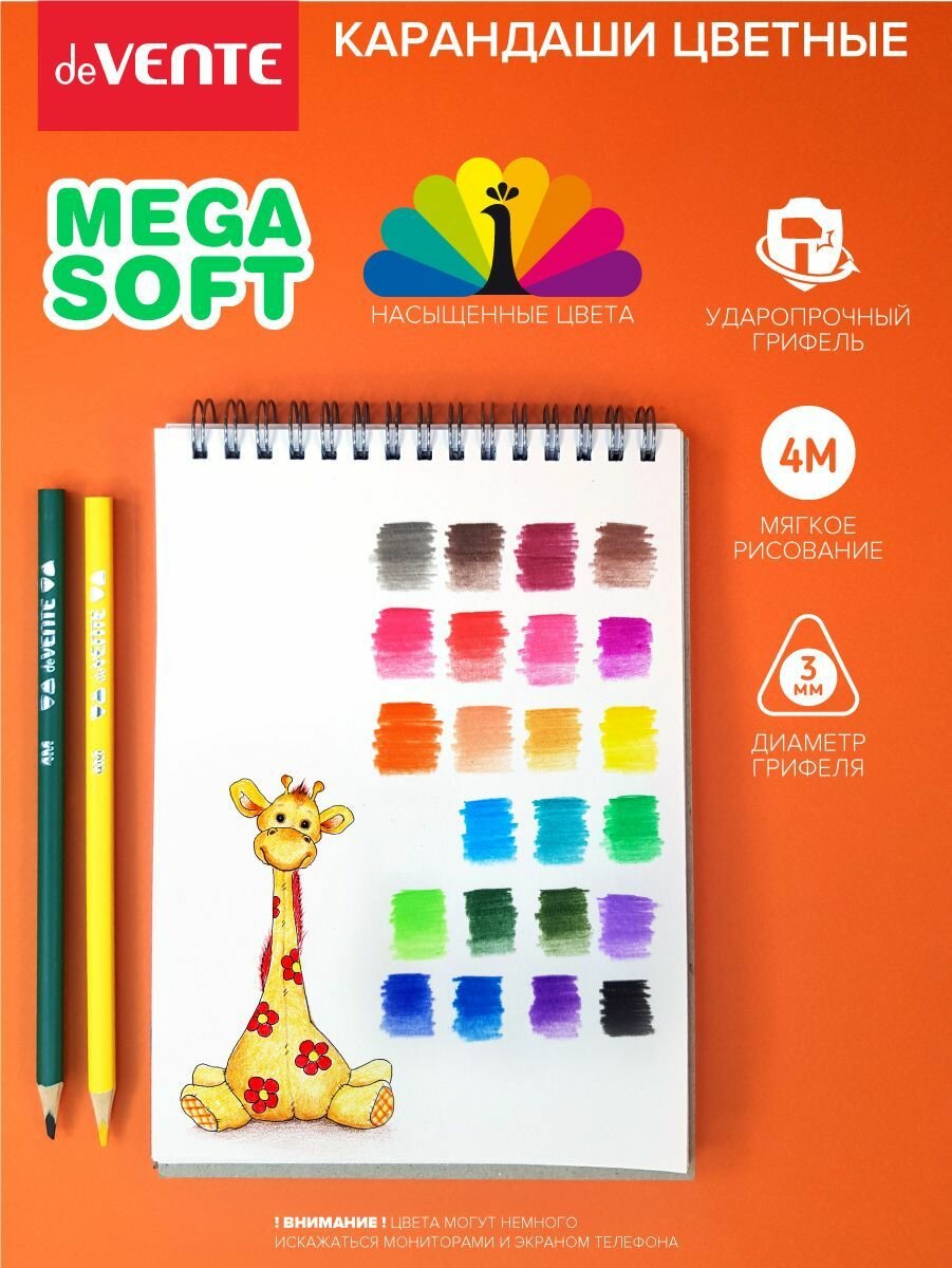 Купить Цветные карандаши deVENTE "Trio Mega Soft", 24 цвета, 4М, диаметр грифеля 3 мм, трехгранные (5024915)