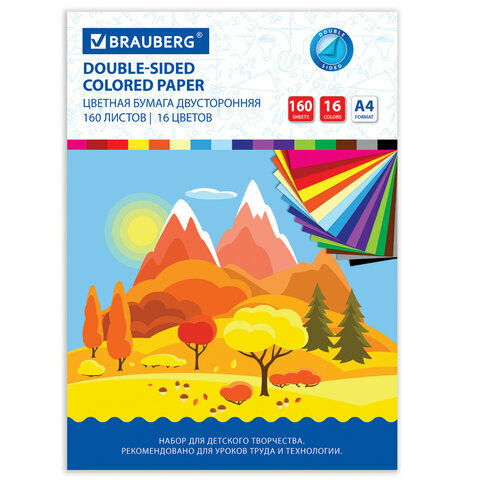Цветная бумага А4 тонированная В массе, 160л. 16цв., 80г/м2, BRAUBERG, Горы, 115089 интересное:
