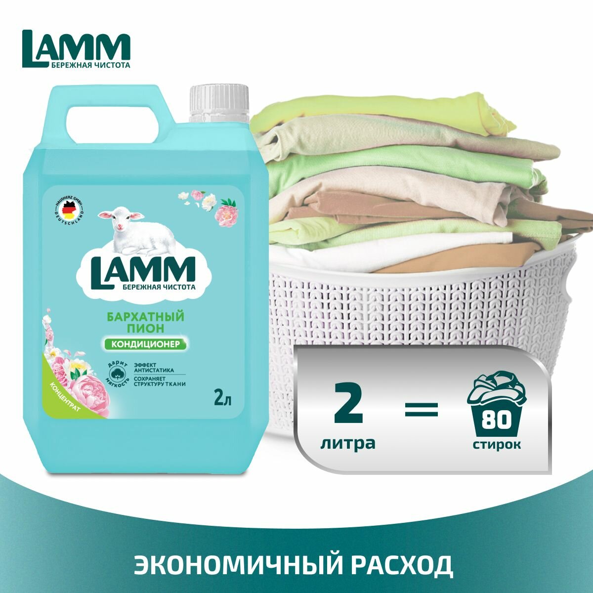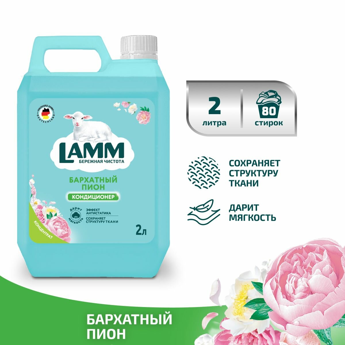 Купить LAMM Бархатный пион кондиционер для белья универсальный концентрат ополаскиватель антистатик для всех типов тканей 80 стирок 2 л
