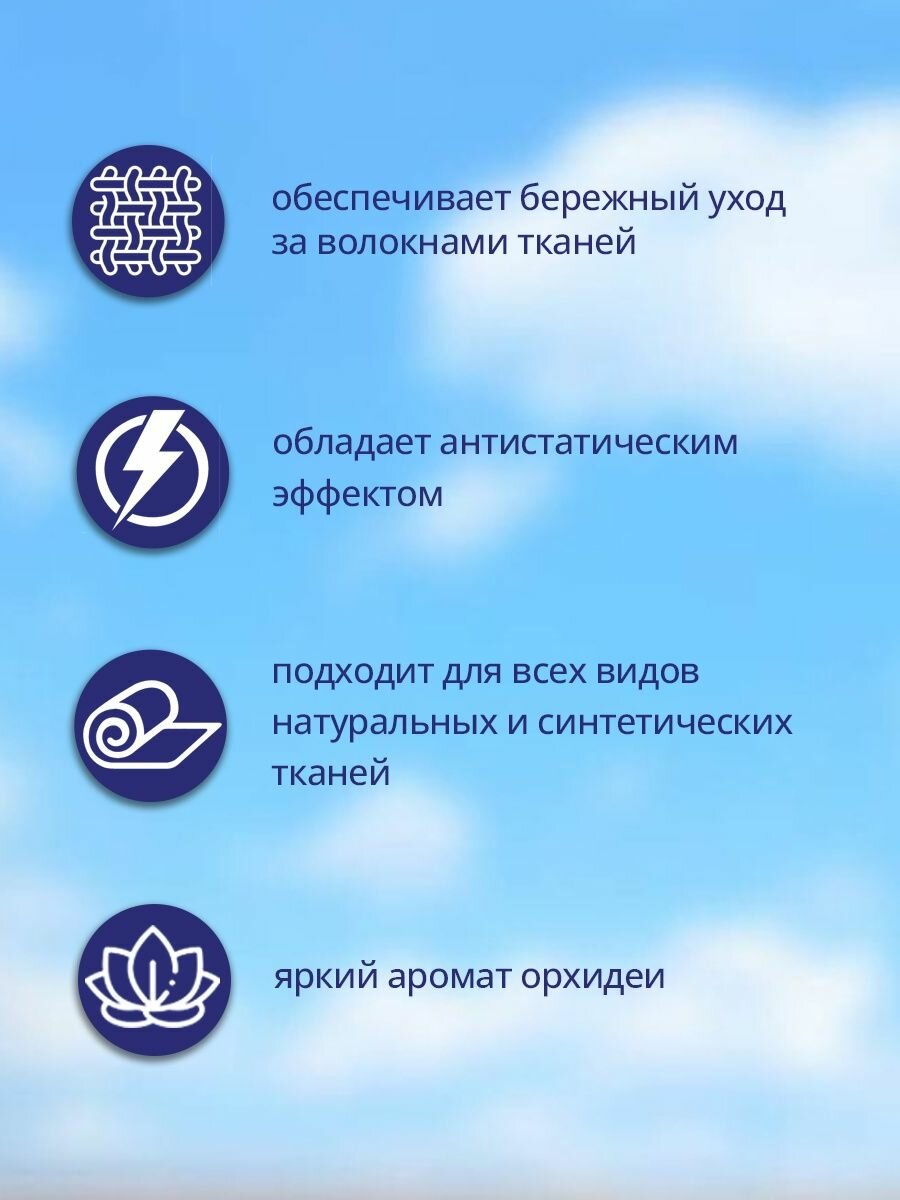 | Эффект | антибактериальный / антистатический / легкая глажка / смягчение ткани / устранение неприятных запахов |