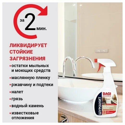 Чистящее средство для сантехники Bagi Classic Шуманит для ванных комнат 400 мл (B-209792-N) интересное: