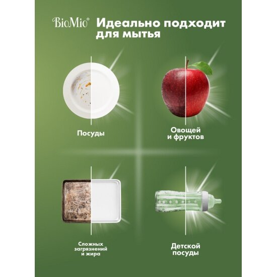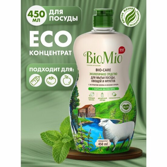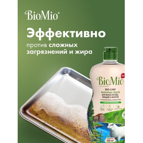 BioMio Средство для ручного мытья посуды Bio-Care с эфирным маслом мяты, 450 мл, 2 шт