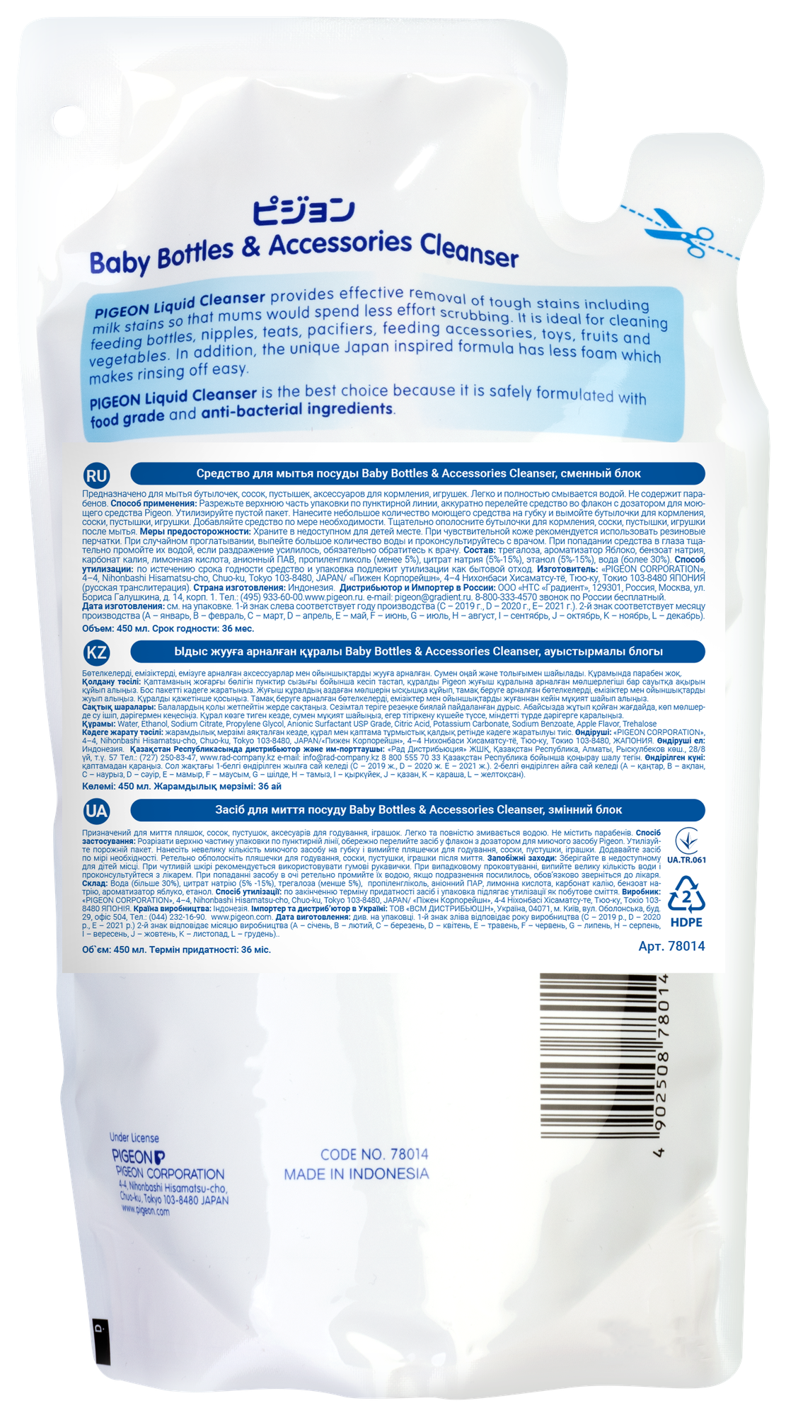 Купить PIGEON Baby Bottles&Accessories Cleanser - сменный блок для мытья детской посуды и фруктов 450 мл