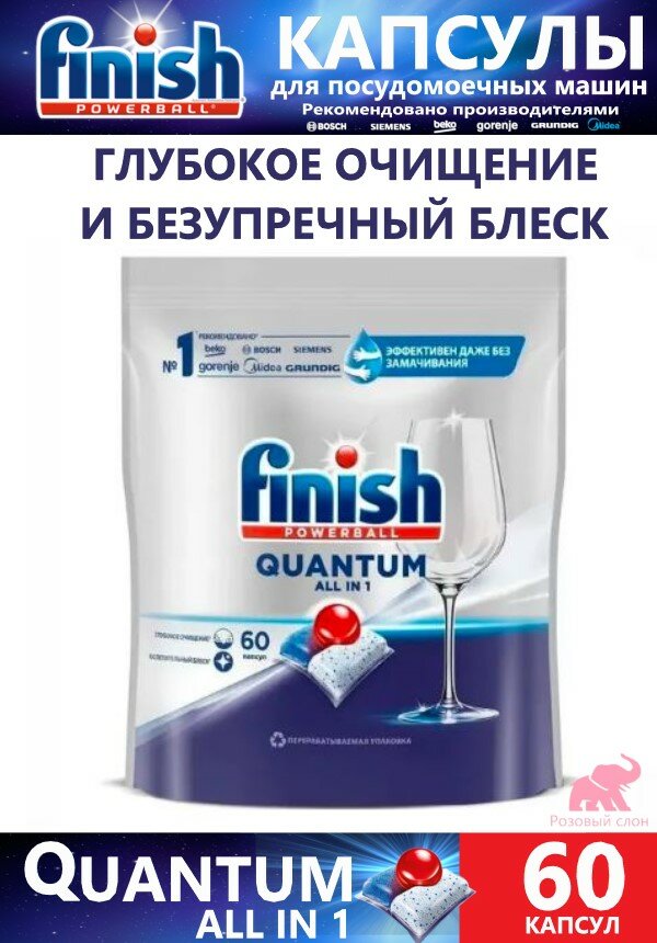 Капсулы для мытья посуды Finish Quantum для посудомоечной машины, таблетки для посудомоечных машин, 60 шт.