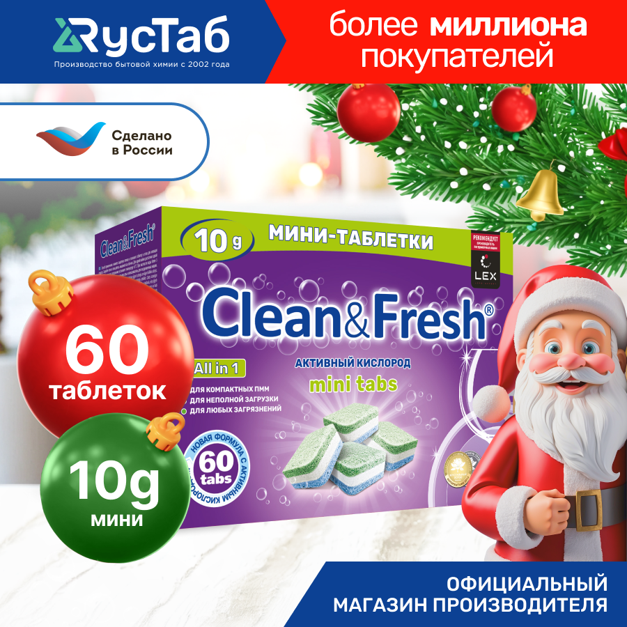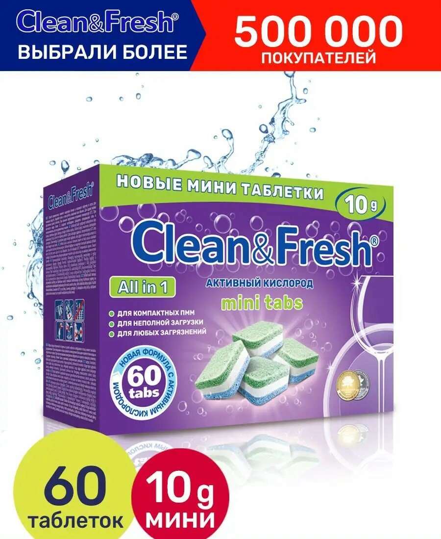 Мини таблетки для посудомоечной машины Clean&Fresh mini tabs, 60 шт. интересное: