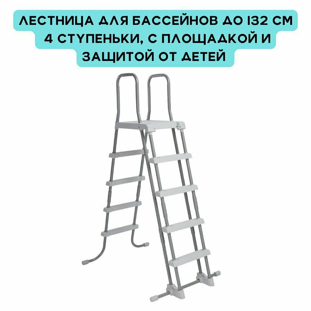 | Дополнительная информация | Лестница для надувных и каркасных бассейнов с высотой борта 132 см, с площадкой и съёмными ступенями, Intex 28077 |