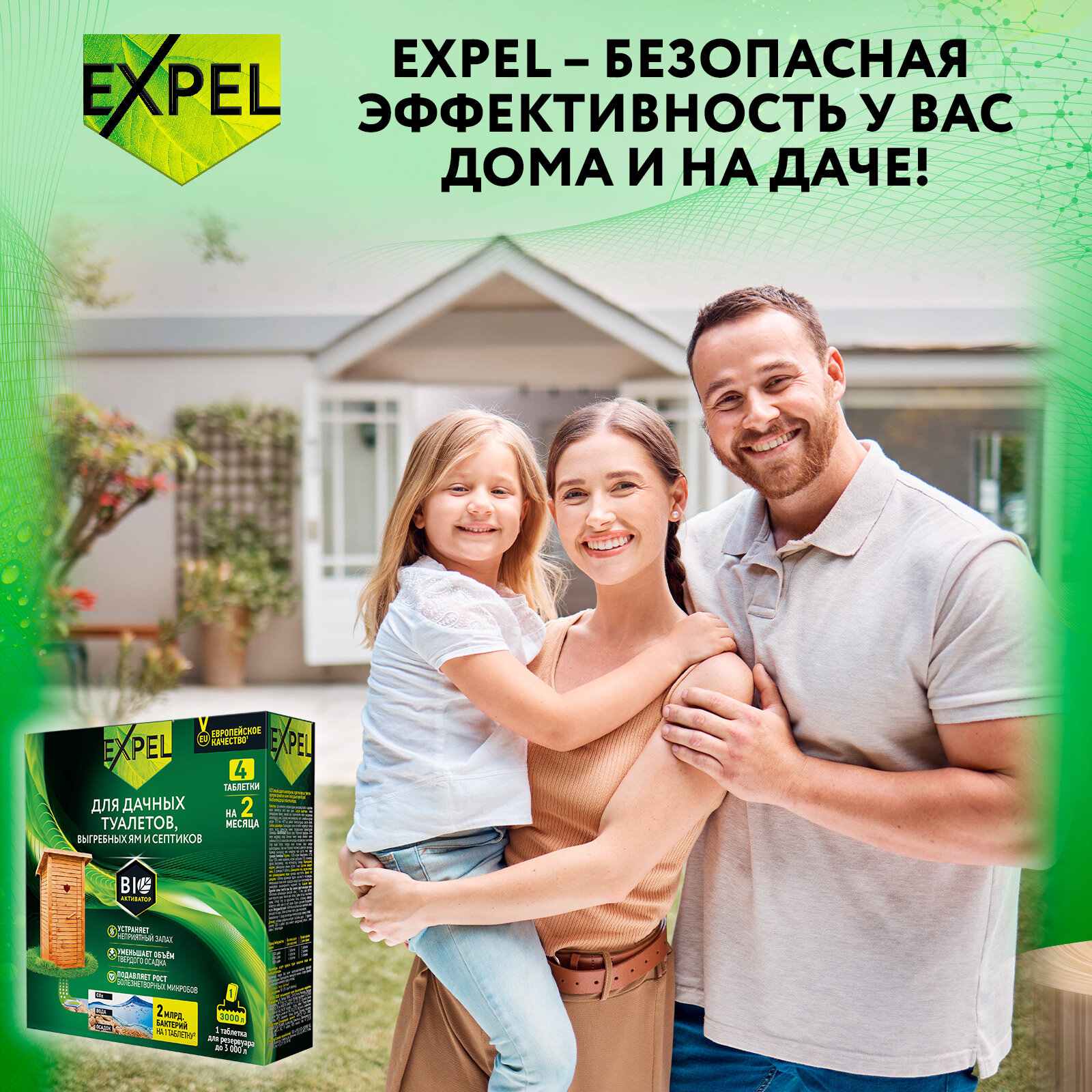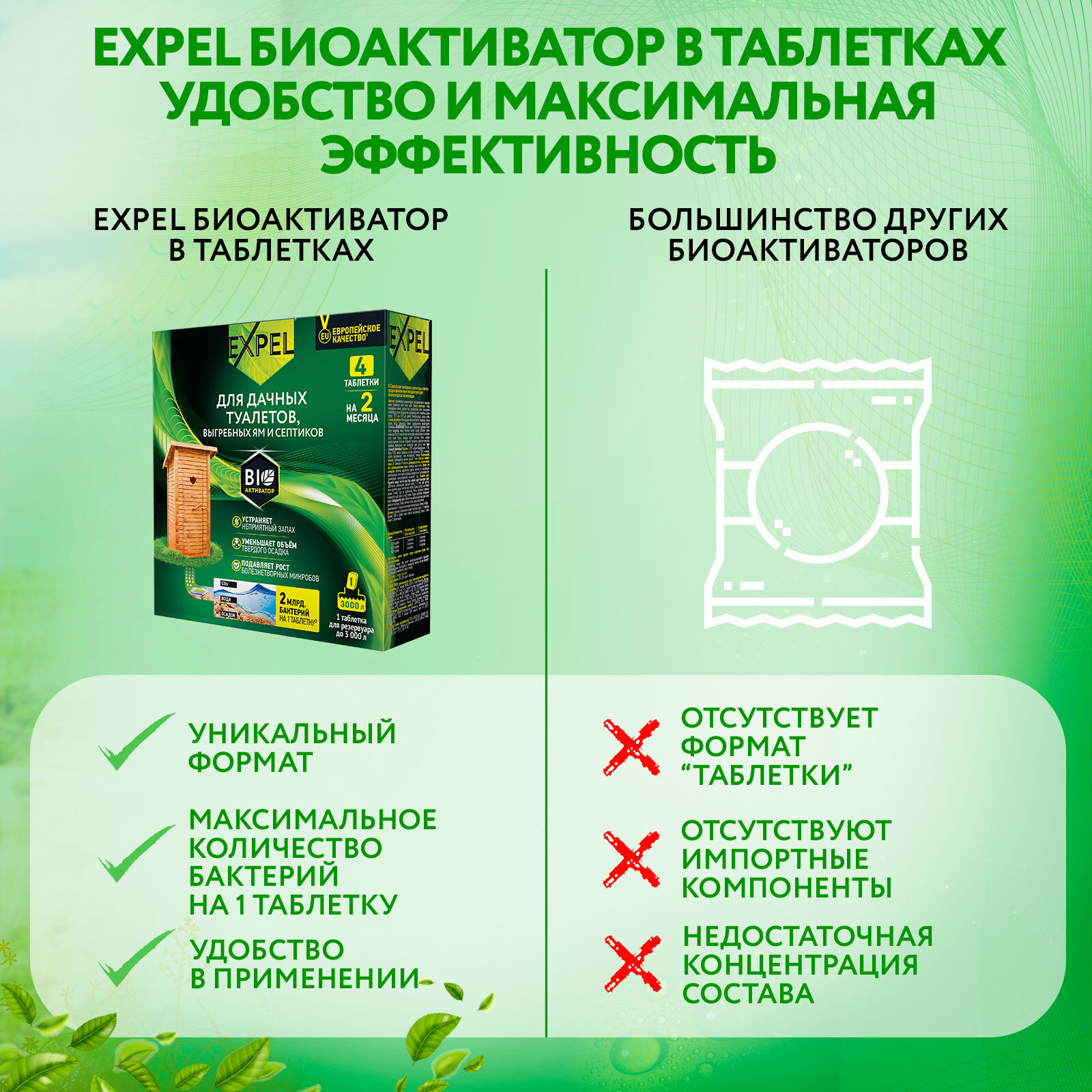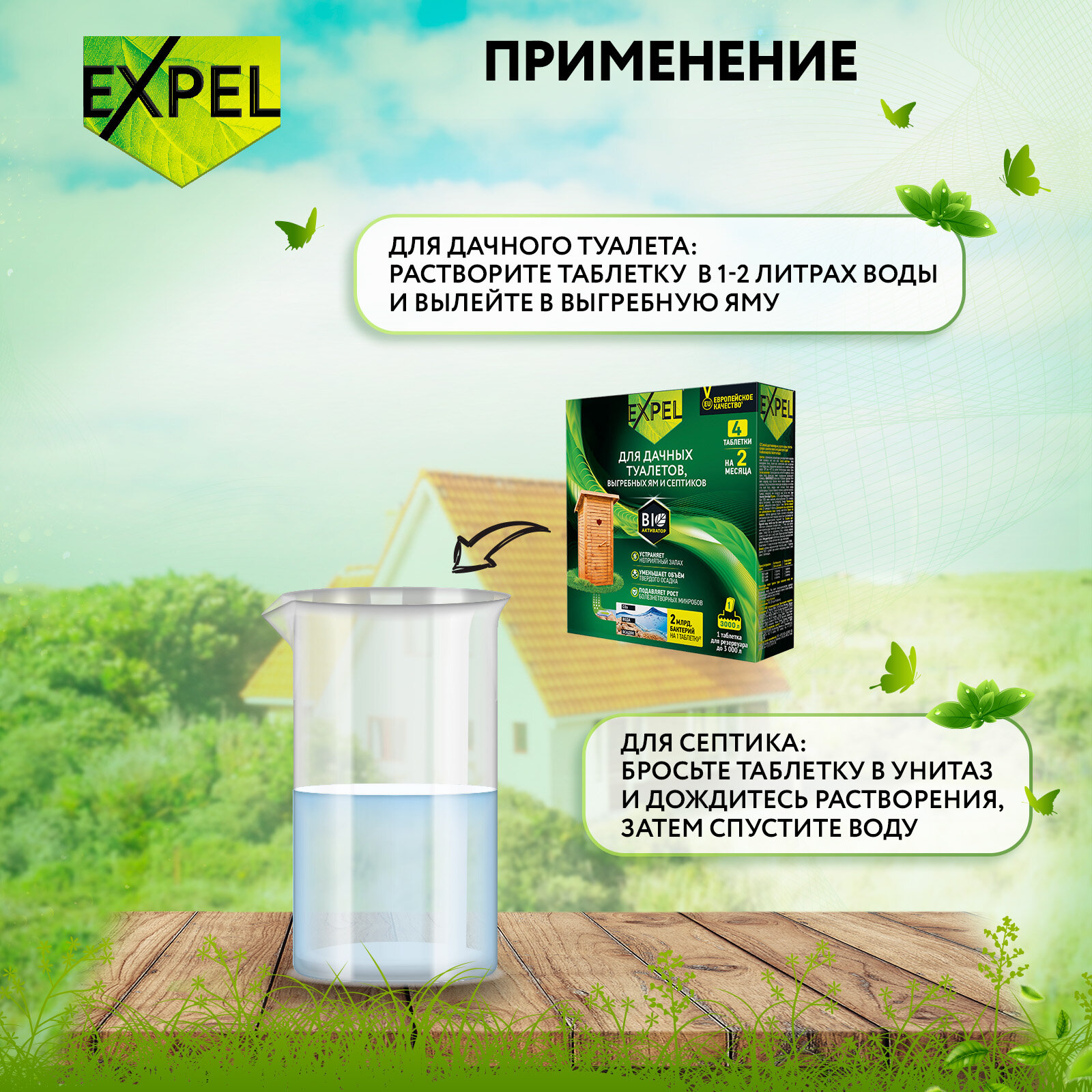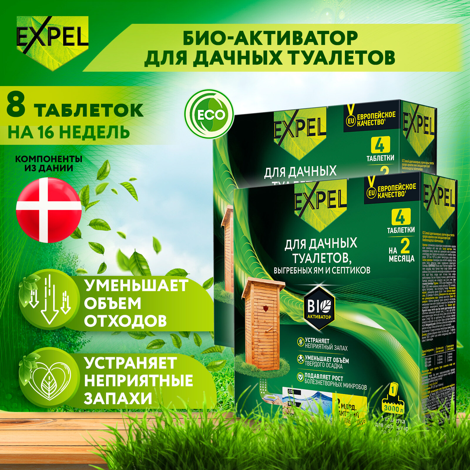 Expel биоактиватор для дачных туалетов и септиков 8 недель 4 таблетки
