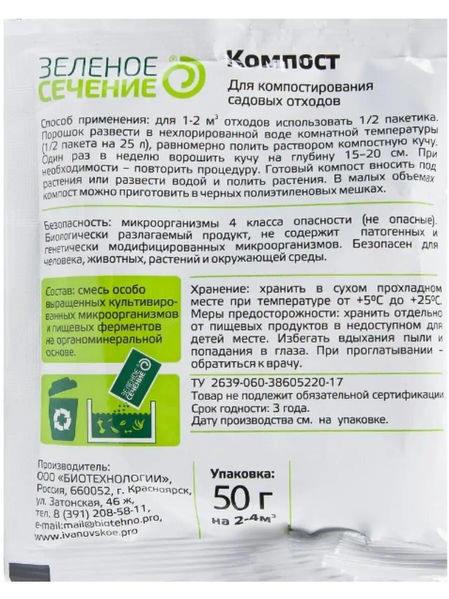 Средство для компостирования садовых отходов Компост Зеленое Сечение, 50 г 3732521 интересное: