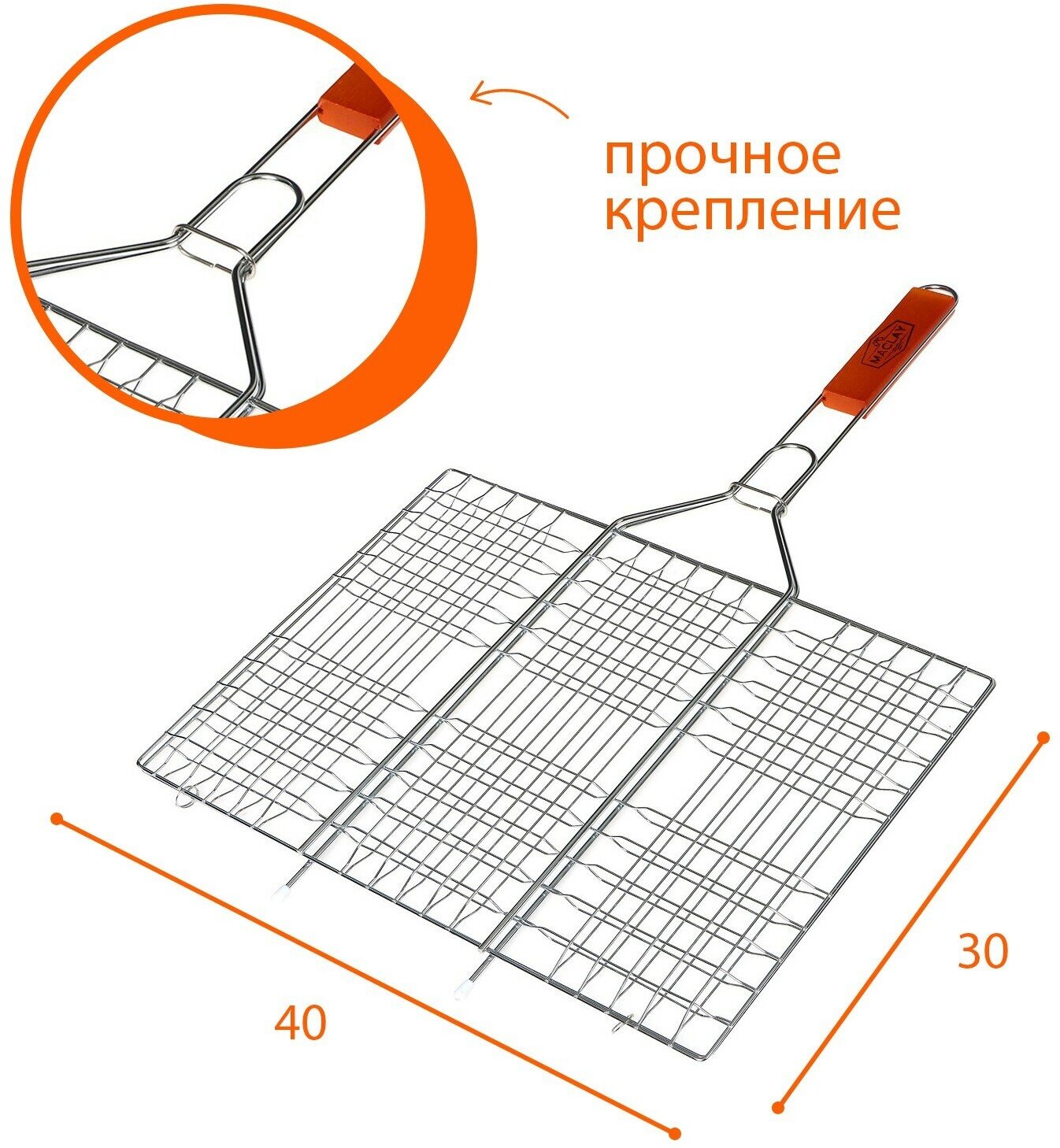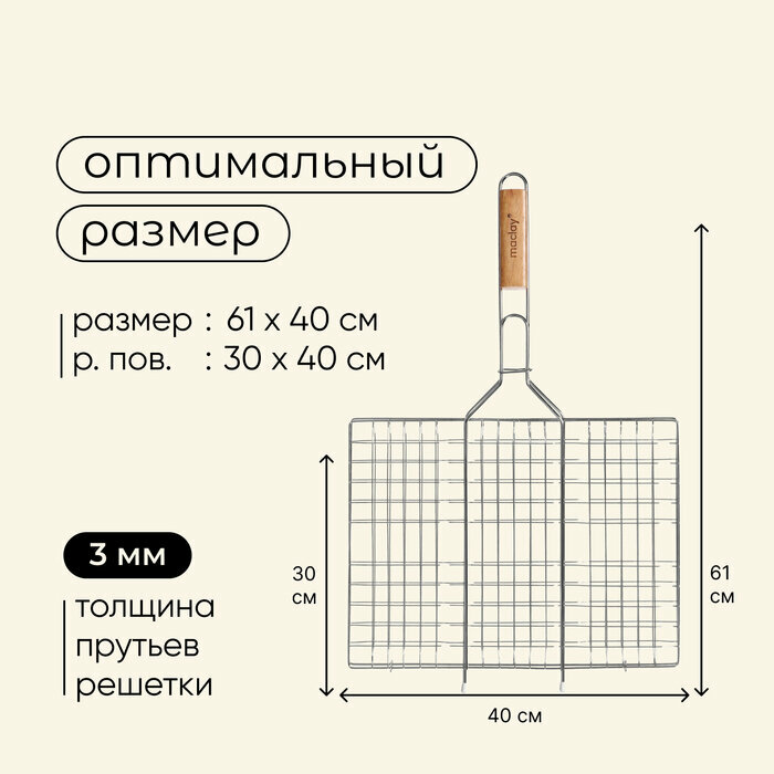 Решётка - гриль универсальная maclay, 30x40 см, хромированная сталь, для мангала
