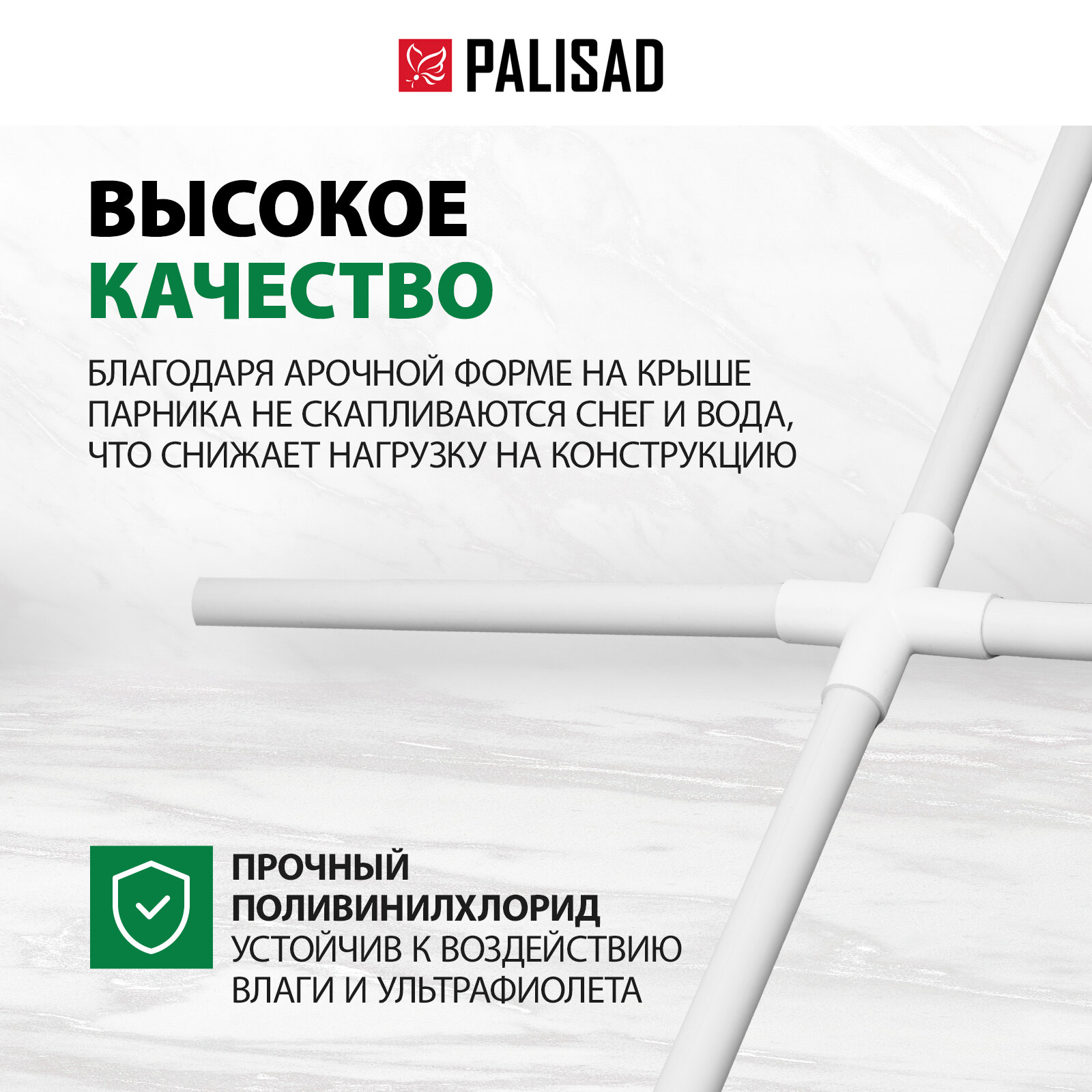 | Комплектация | Труба полудуга - 14 шт; Труба-удлинитель - 32 шт; Крестовина - 15 шт; Тройник - 6 шт |
