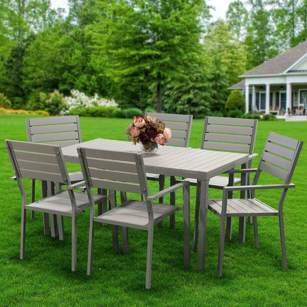 Купить Мебель садовая Green Days, Эллада, серая, стол, 140х70х70 см, 6 стульев, 120 кг, YTCT009-1
