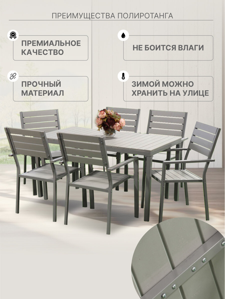 СохранитьМебель садовая Green Days, Эллада, серая, стол, 140х70х70 см, 6 стульев, 120 кг, YTCT009-1 интересное: