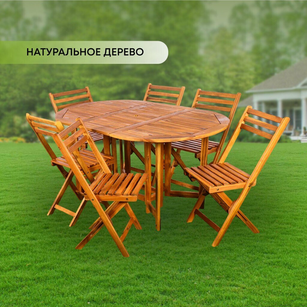СохранитьМебель садовая Green Days, Роса, дерево, стол, 150х90х74 см, 6 стульев, 80 кг, TP4042.1 интересное: