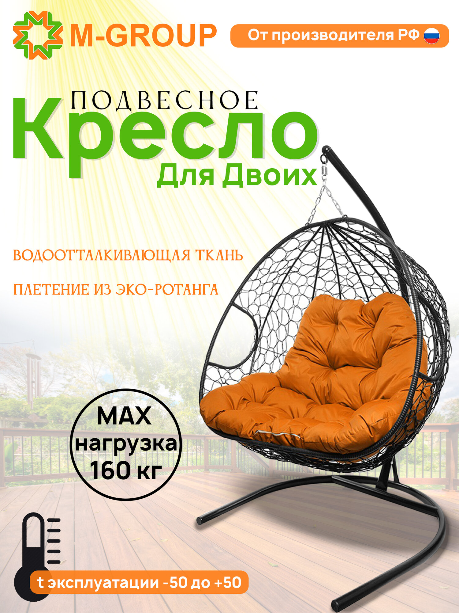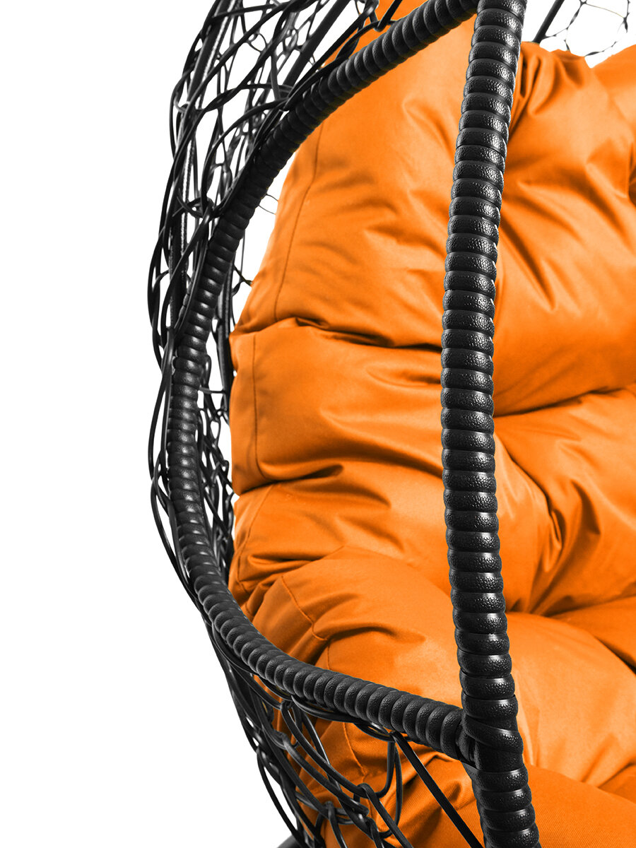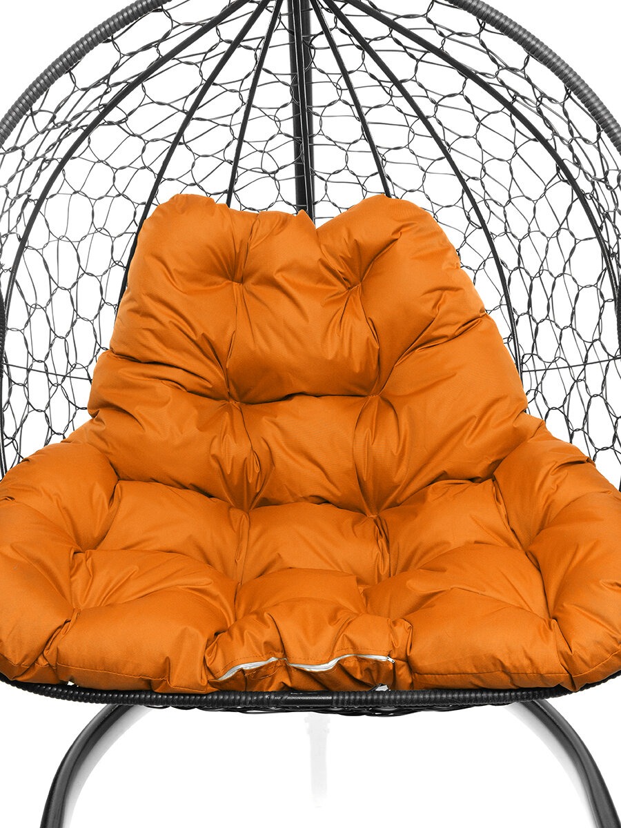 Купить Подвесное кресло из ротанга "Для двоих" черное с оранжевой подушкой M-GROUP