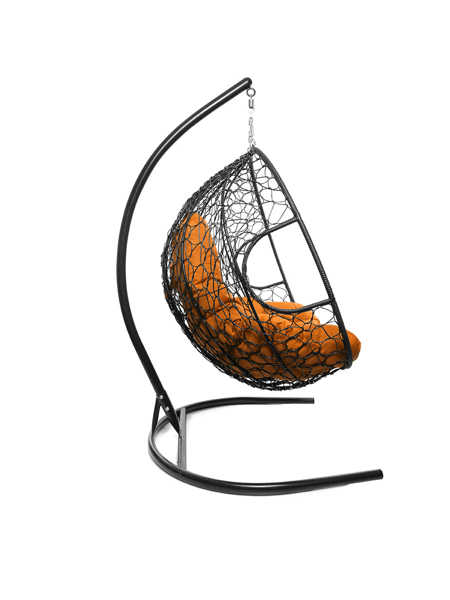 Подвесное кресло для двоих с ротангом чёрное, оранжевая