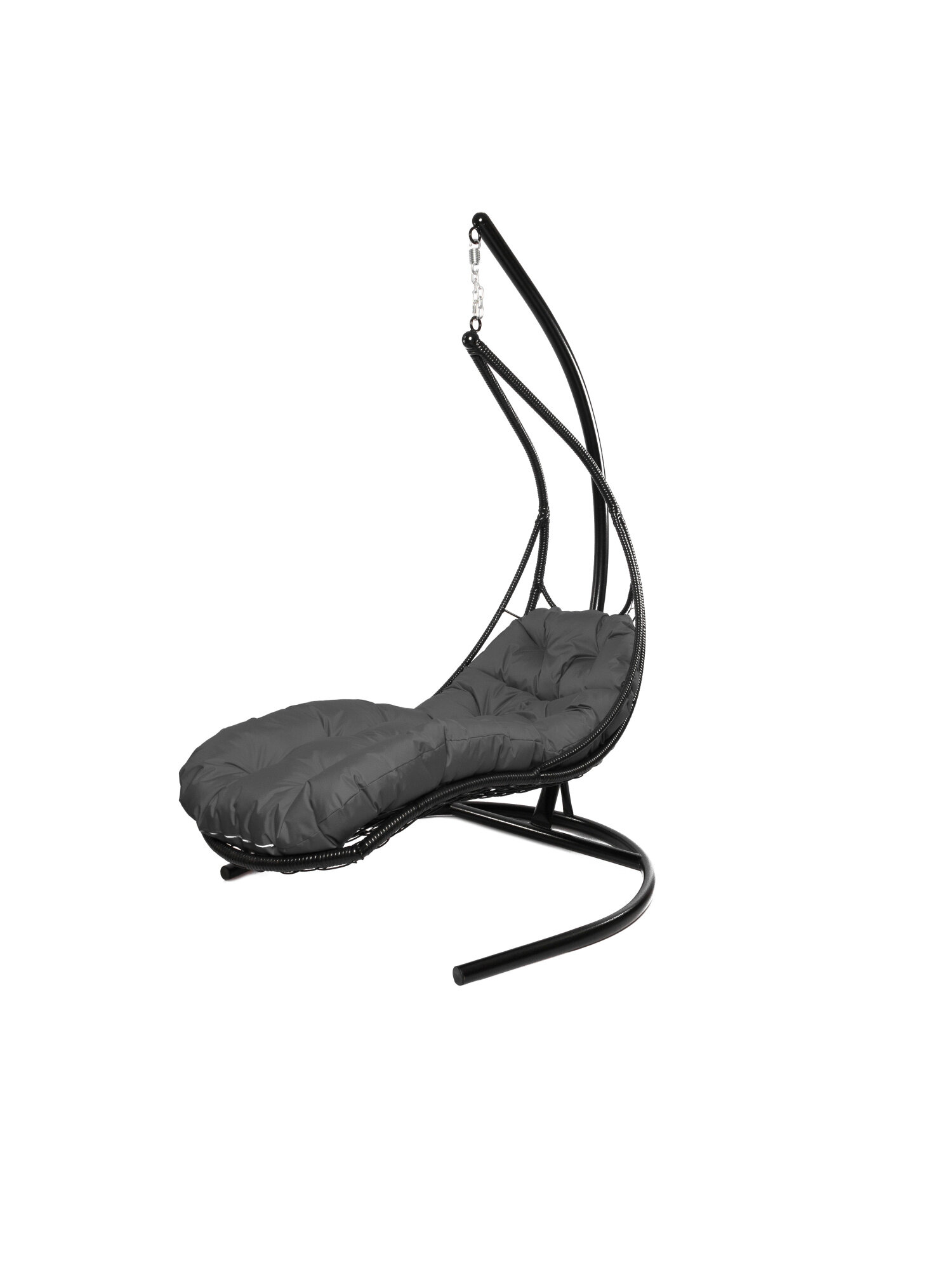 Купить Подвесное кресло лежачее, с ротангом черное, серая подушка