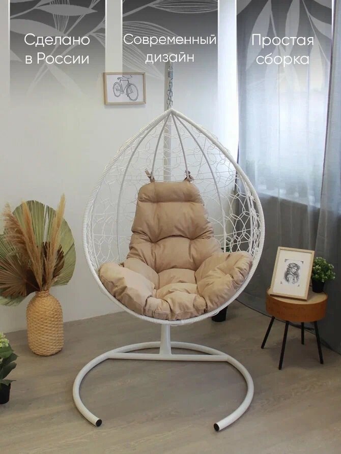 Подвесное кресло «капля» ротанг белое/беживая