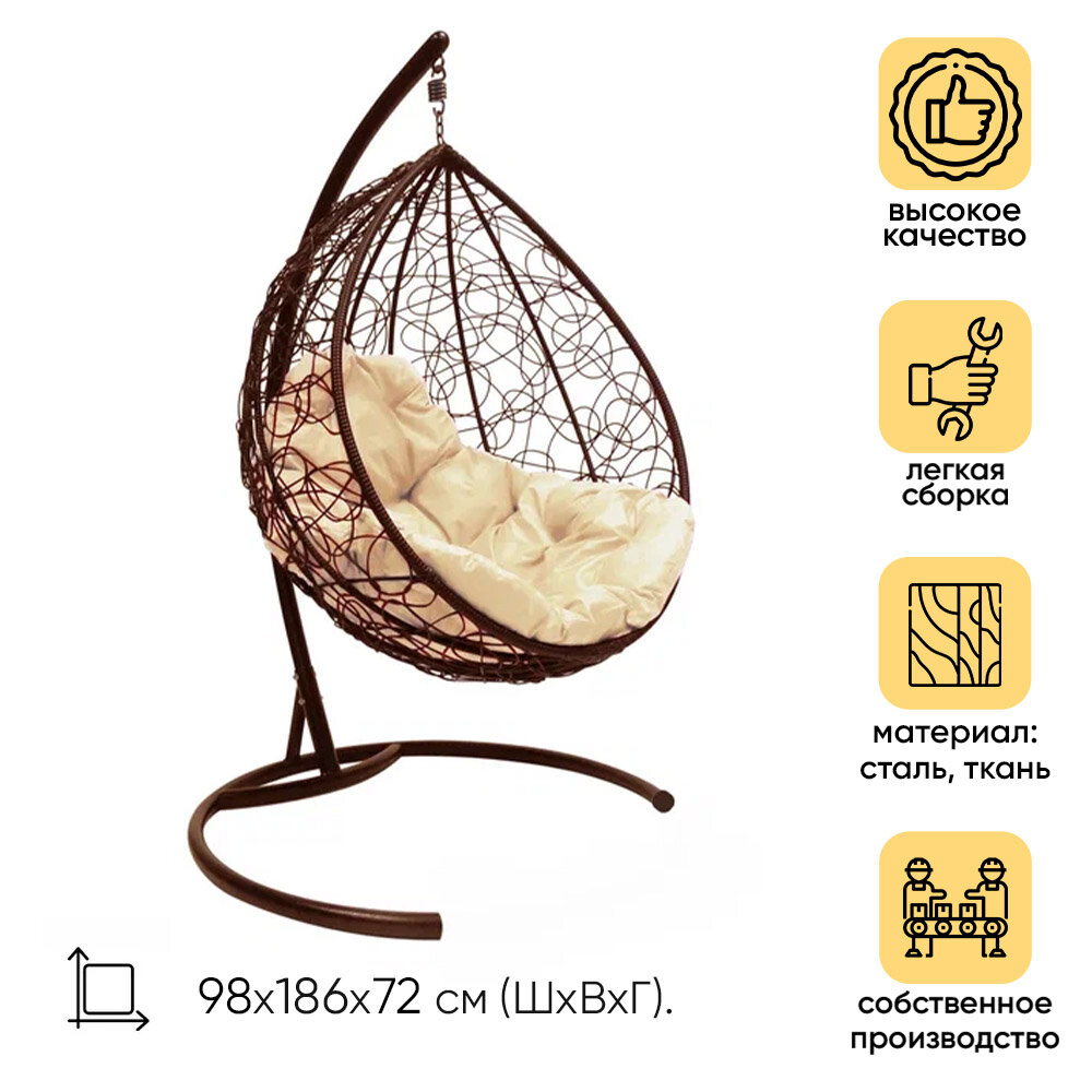 Кресло-кокон подвесное Капля с ротангом, Коричневый/Бежевый