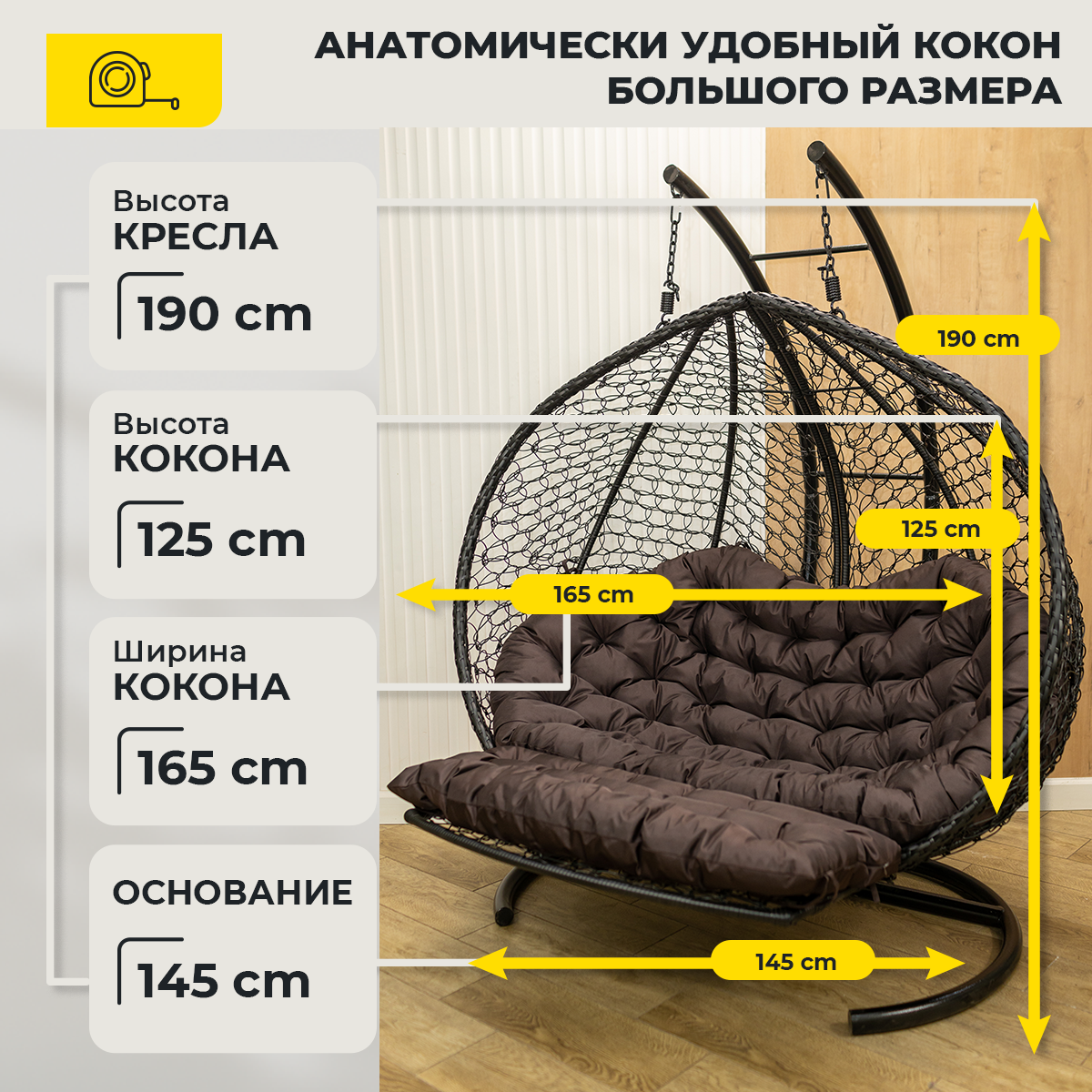 | Комплектация | Разборный кокон, подушка, дуга от стойки, основание стойки, система подвеса, винтовые ножки |