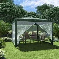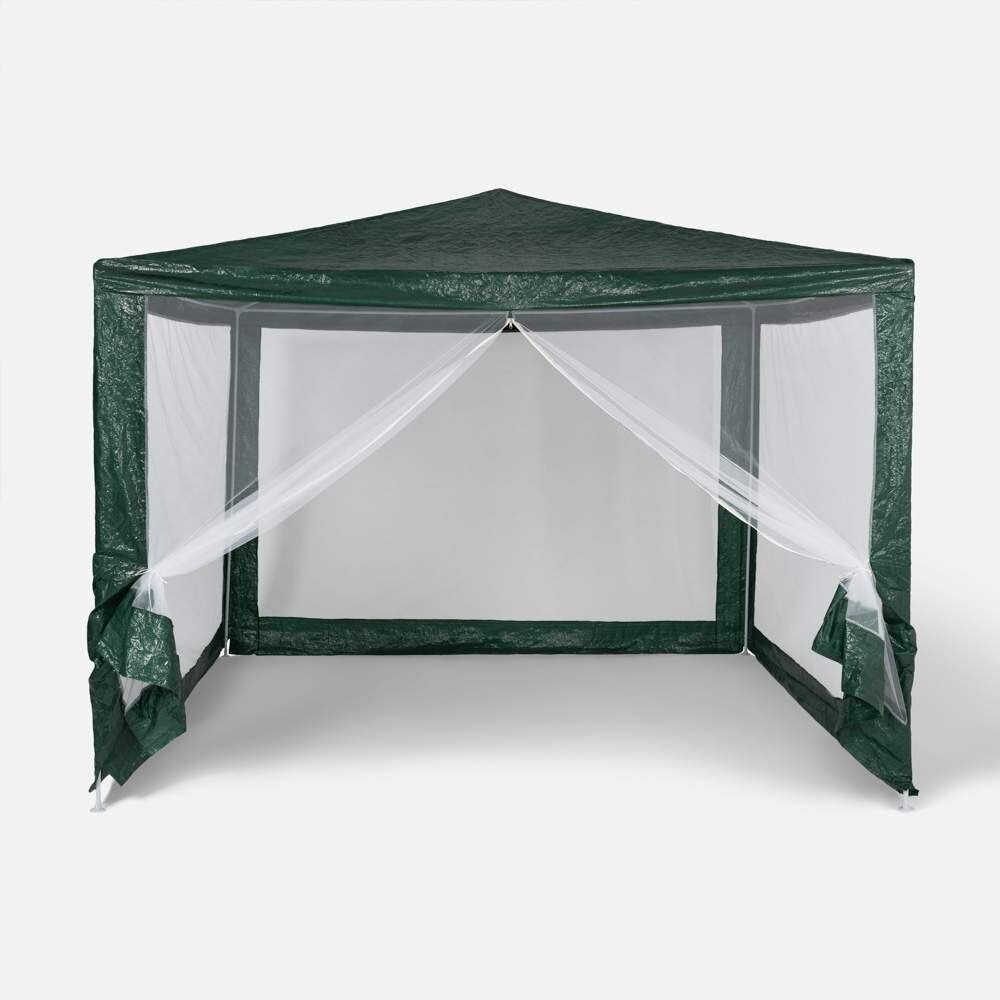 Купить Уютный шатер-павильон для дачи и частного дома 3х3 м с антимоскитной сеткой, на каркасе из стальных труб, зелёный.