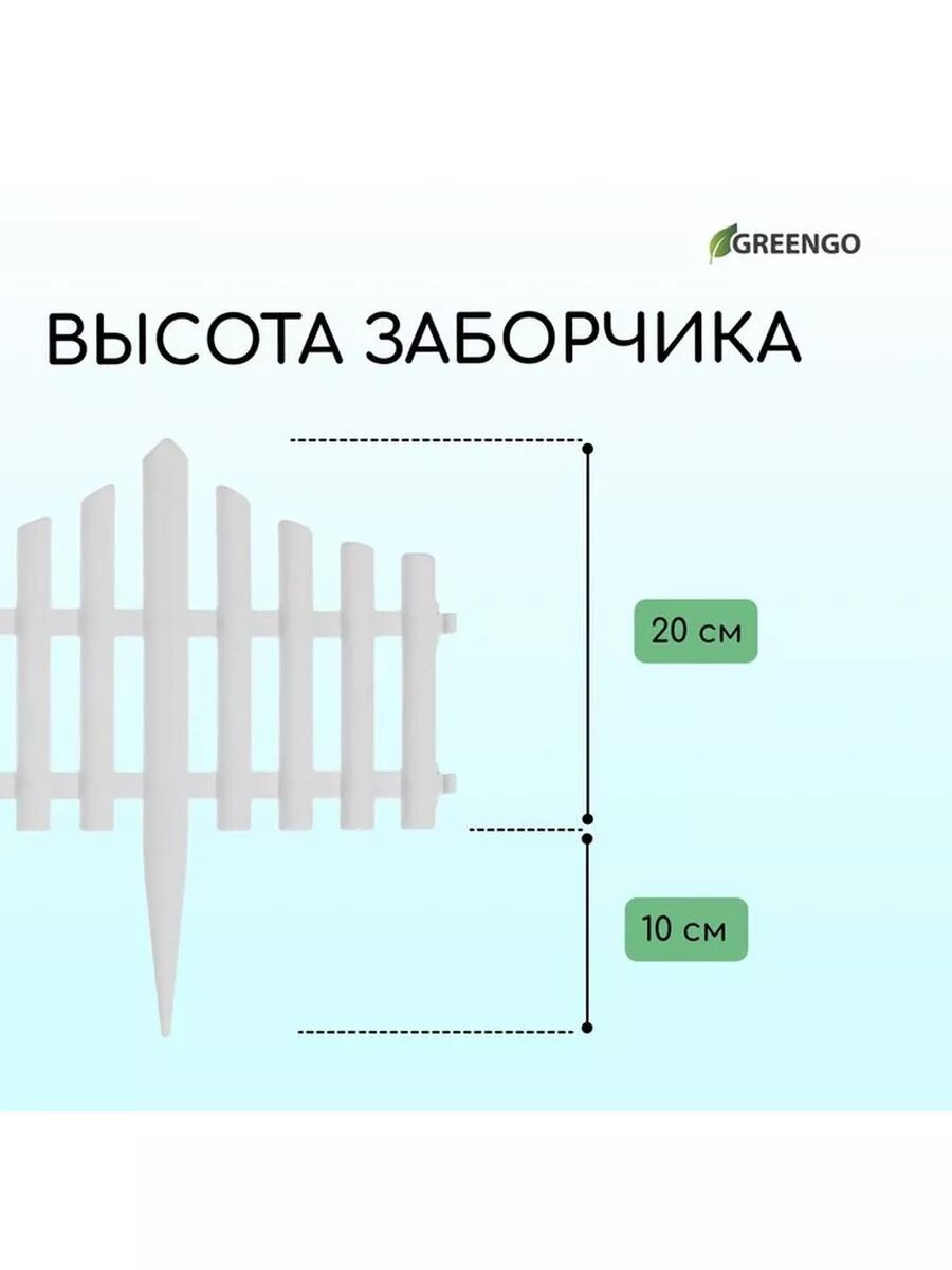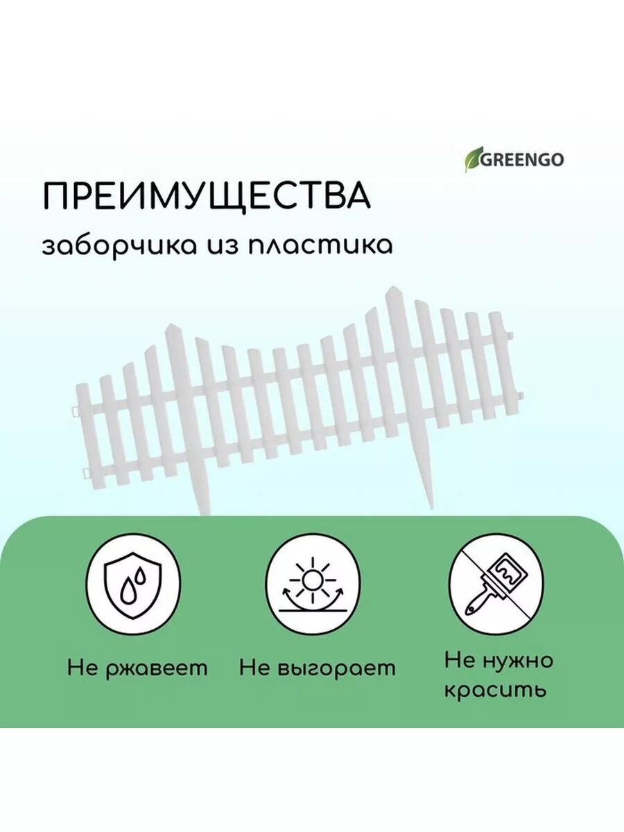 Ограждение декоративное, 35 210 см, 5 секций, пластик, белое, GOTIKA, Greengo
