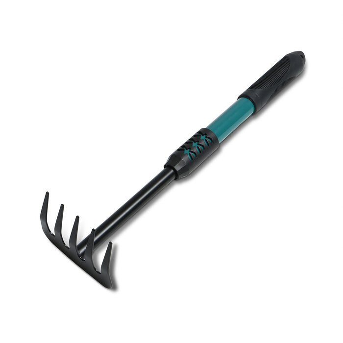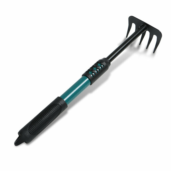 Грабли малые, прямые, 5 зубцов, длина 40,5 см, металл, металлическая рукоять с резиновой ручкой, Greengo