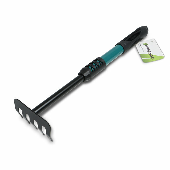 Greengo Грабли малые, прямые, 5 зубцов, длина 40,5 см, металл, металлическая рукоять с резиновой ручкой, Greengo