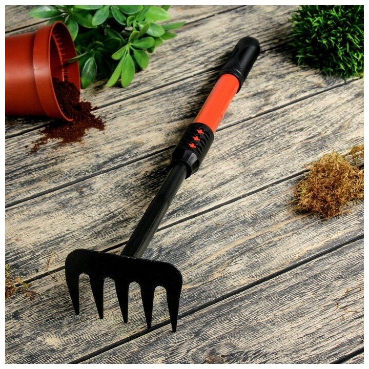 Грабли малые, прямые, 5 зубцов, длина 40,5 см, металл, металлическая рукоять с резиновой ручкой