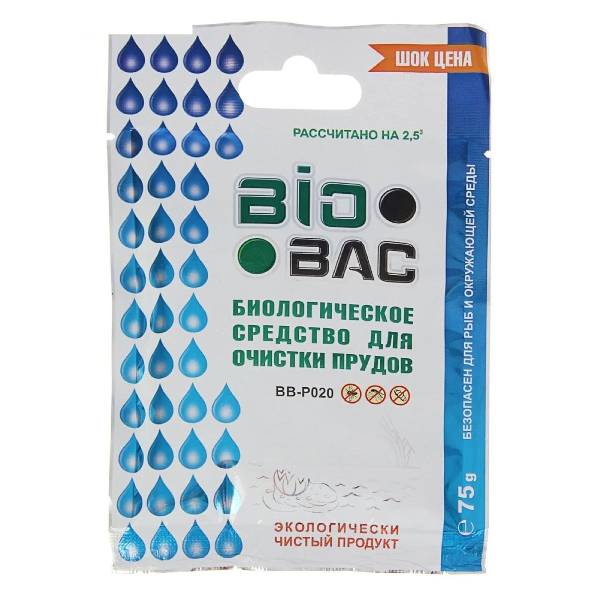Порошок для прудов Биобак BB-P020, 0.075 кг, без хлора интересное: