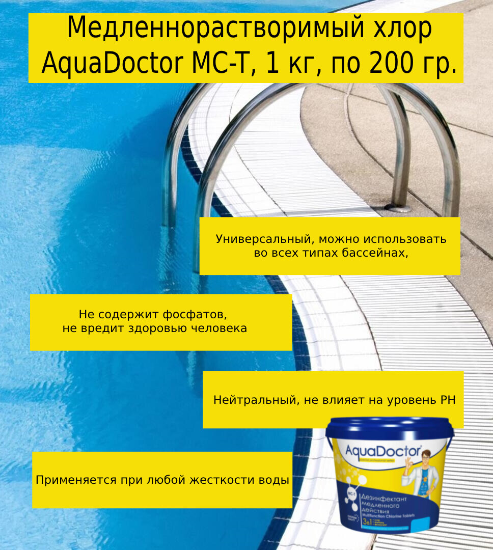 Комбинированный медленно-растворимый препарат на основе 60% активного хлора AquaDoctor MC-T, таблетки по 200 гр, 50 кг, цена - за 1 шт